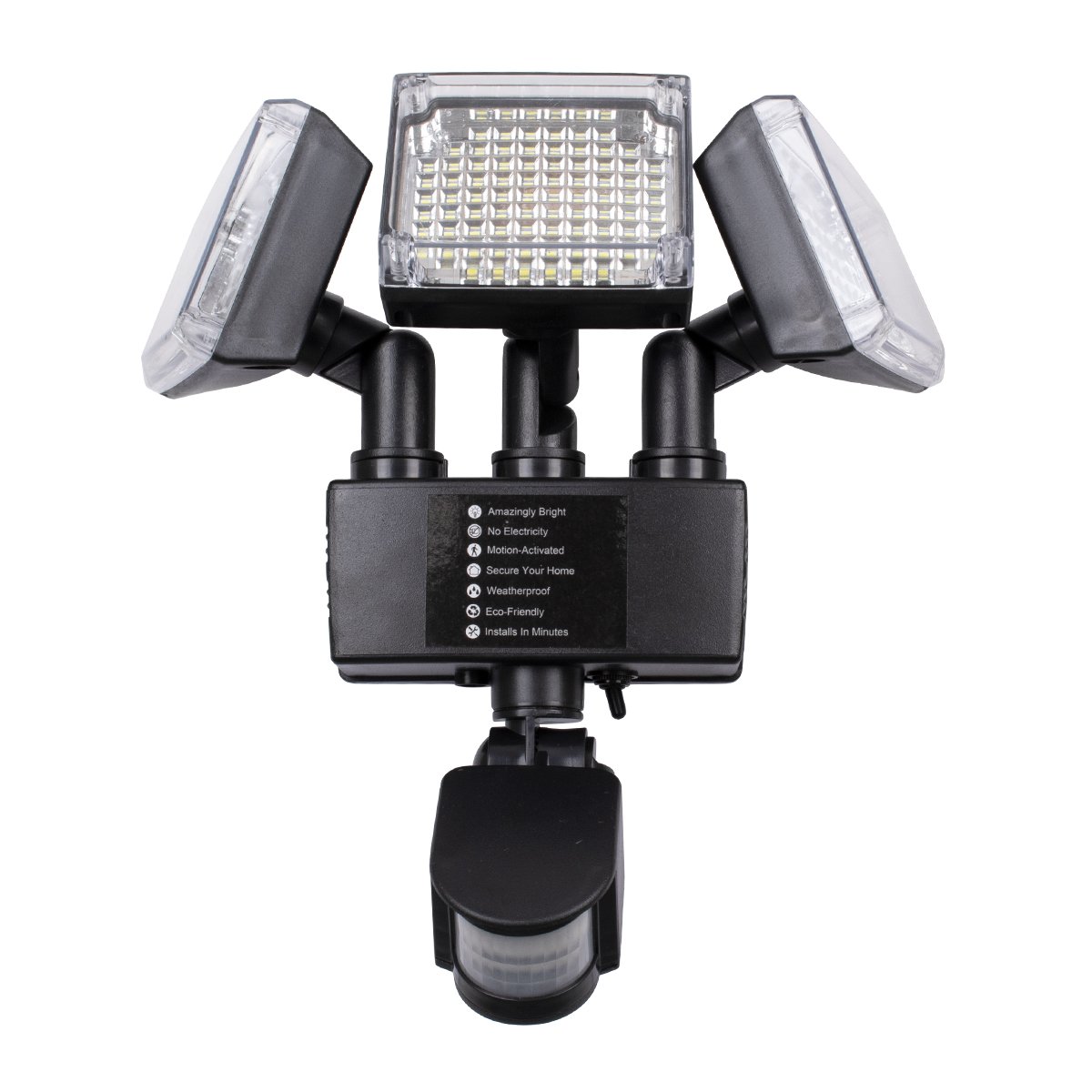 GloboStar® 85711 Αυτόνομος Ηλιακός Προβολέας με Τρεις Περιστρεφόμενες Κεφαλές LED SMD 2835 50W 2500lm με Ενσωματωμένη Μπαταρία 3400mAh – Φωτοβολταϊκό Πάνελ με Αισθητήρα Ημέρας-Νύχτας – PIR Αισθητήρα Κίνησης Αδιάβροχο IP65 Ψυχρό Λευκό 6000K