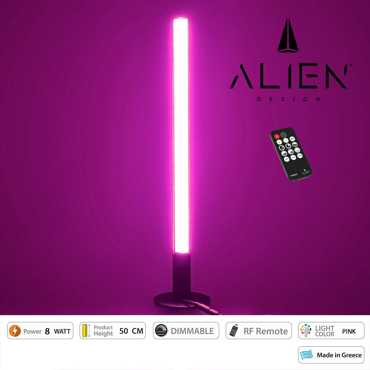 GloboStar® ALIEN-DIVA-BLACK-50-7 ALIEN Design DIVA Μοντέρνο Minimal Nordic Μεταλλικό Φωτιστικό Επιτραπέζιο – Πορτατίφ – Λαμπατέρ Μαύρο LED 8W 800 lm με Ασύρματο Χειριστήριο RF & Dimmer IP20 Ροζ Μ3 x Π1.6 x Υ50cm
