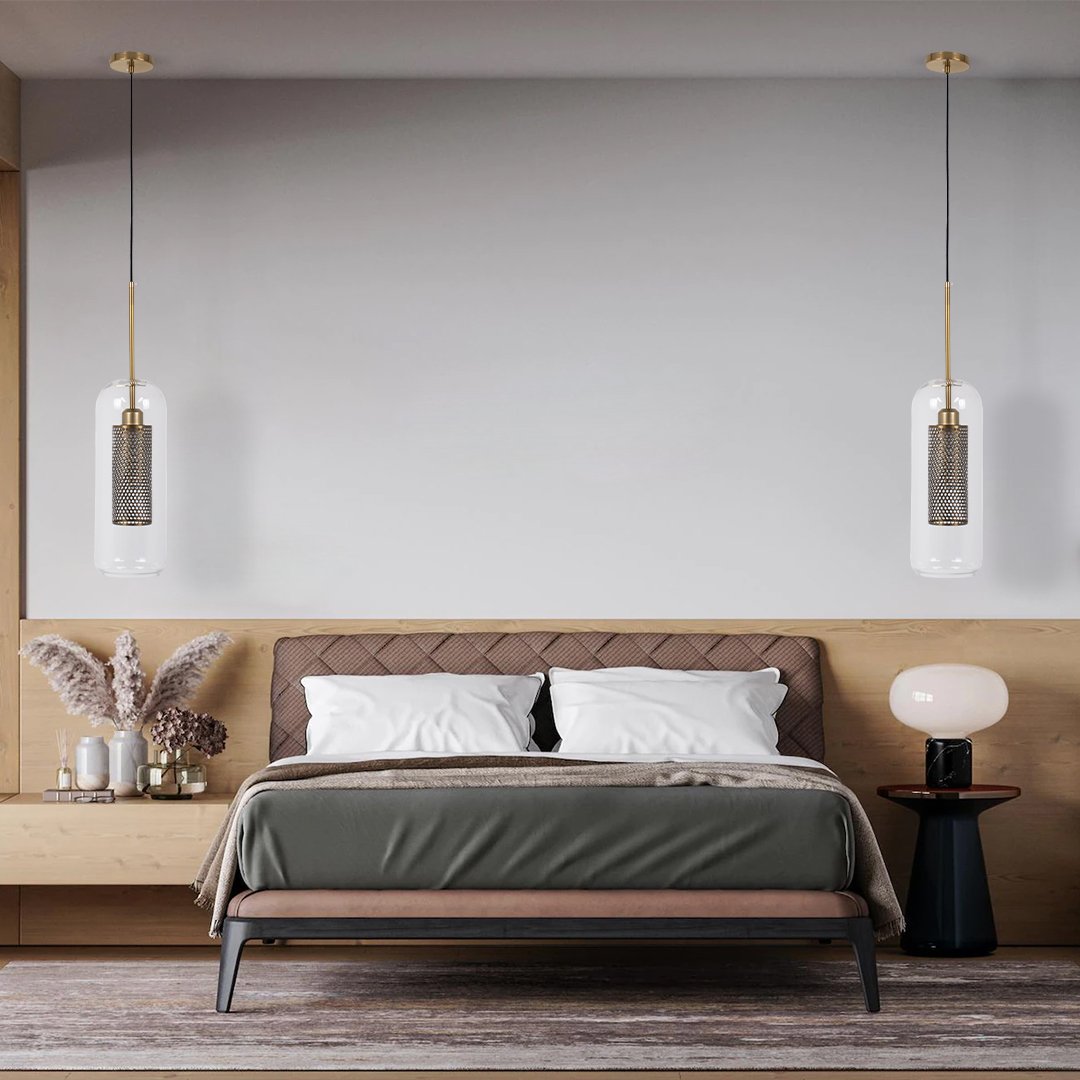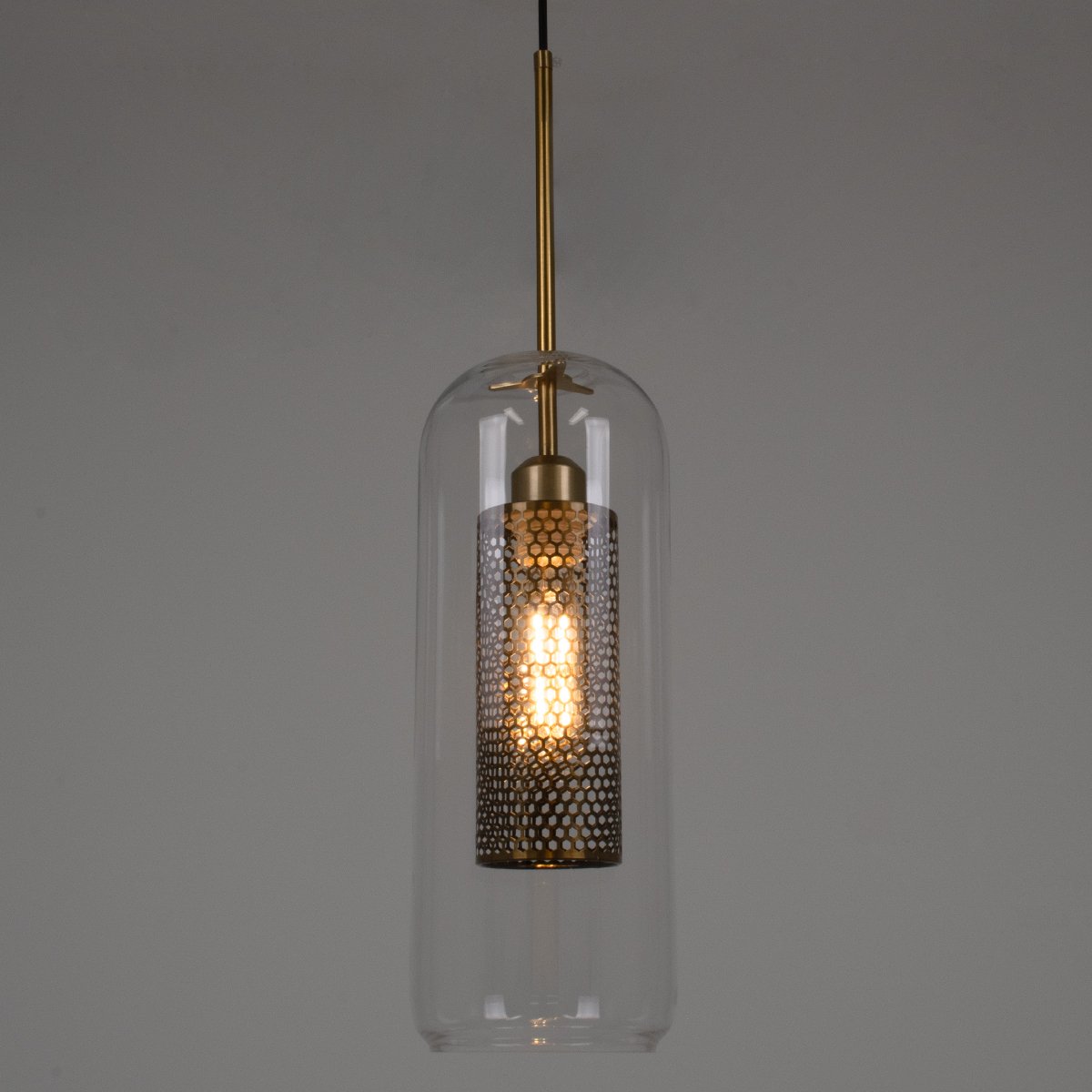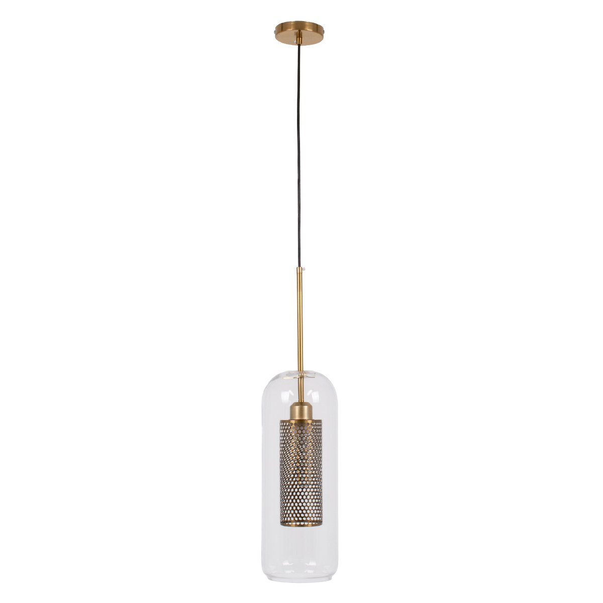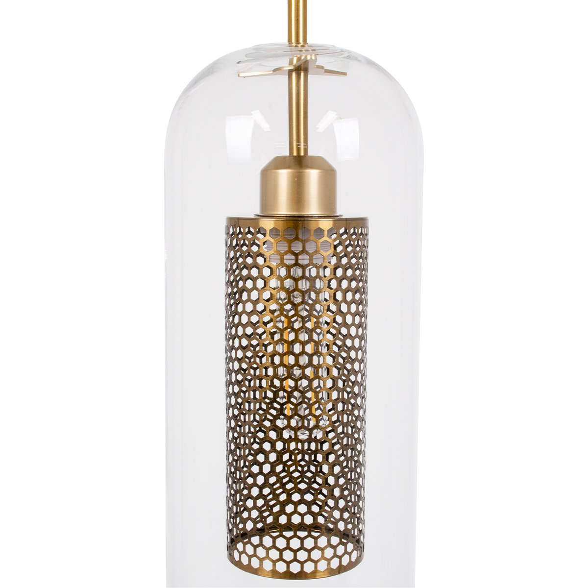 GLOBOSTAR® AVERY 00741 Μοντέρνο Κρεμαστό Φωτιστικό Οροφής με Ντουί 1 x E27 AC 220-240V IP20 – Διάφανο & Χρυσό – Μ15 x Π15 x Υ60cm