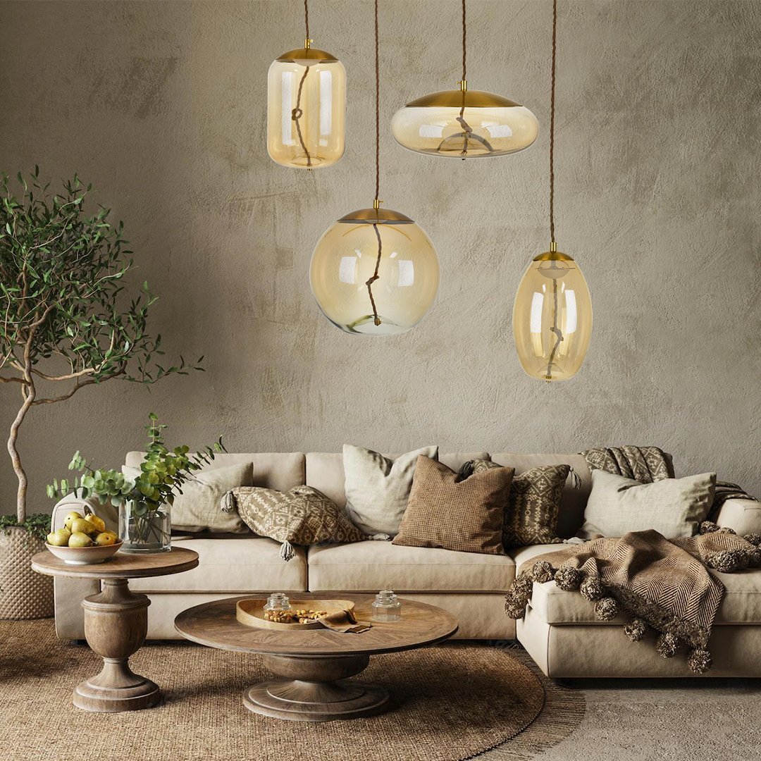 GLOBOSTAR® AXTON 00748 Μοντέρνο Κρεμαστό Φωτιστικό Οροφής LED 5W 500lm 180° AC 220-240V IP20 Θερμό Λευκό 2700K – Sanan SMD Chip – Χρυσό & Μελί – Μ30 x Π30 x Υ30cm – 2 Xρόνια Εγγύηση