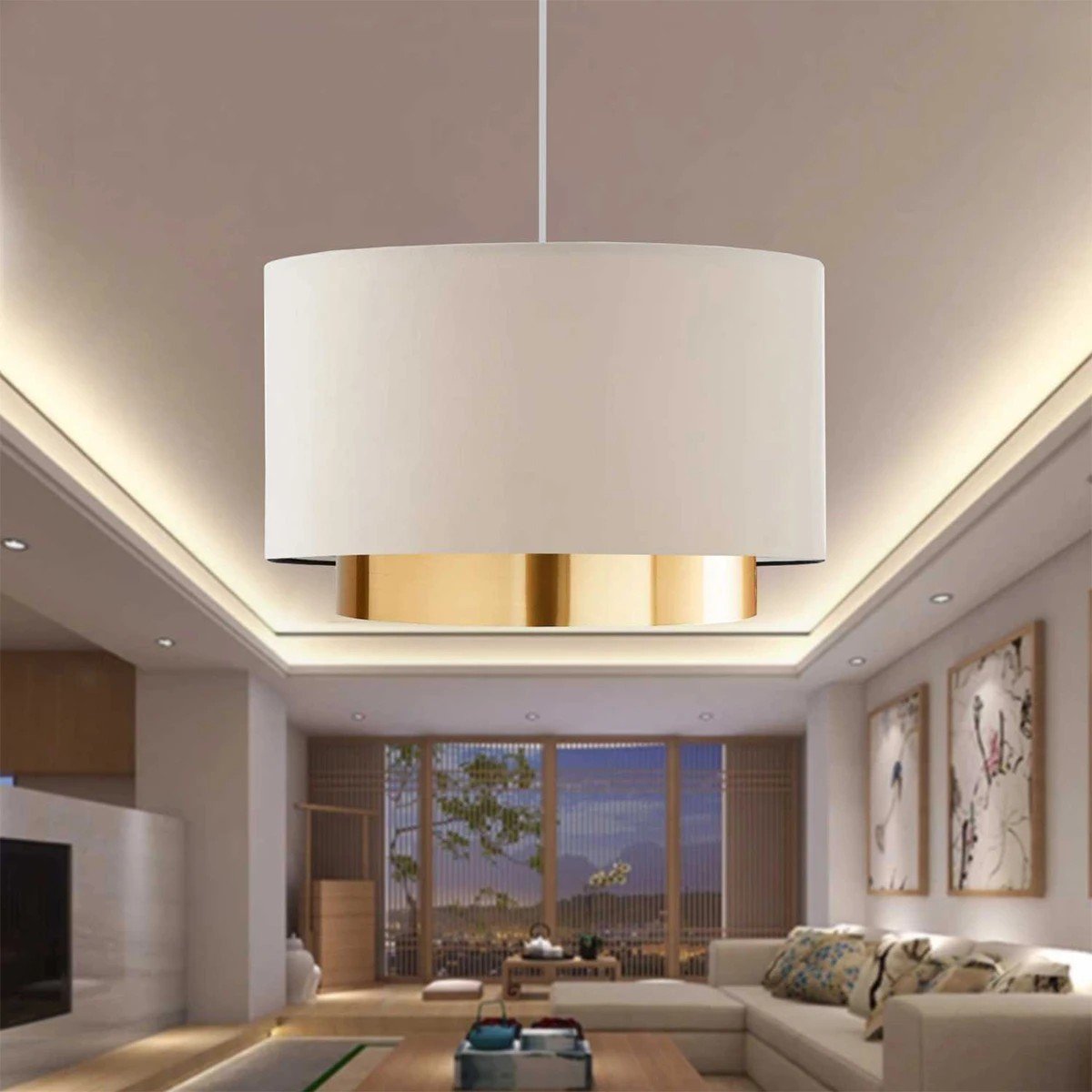 GLOBOSTAR® BASIL 204-0173 Μοντέρνο Κρεμαστό Φωτιστικό Οροφής με Ντουί 1 x E27 AC 220-240V IP20 – Μπεζ & Χρυσό – Μ30 x Π30 x Υ20cm
