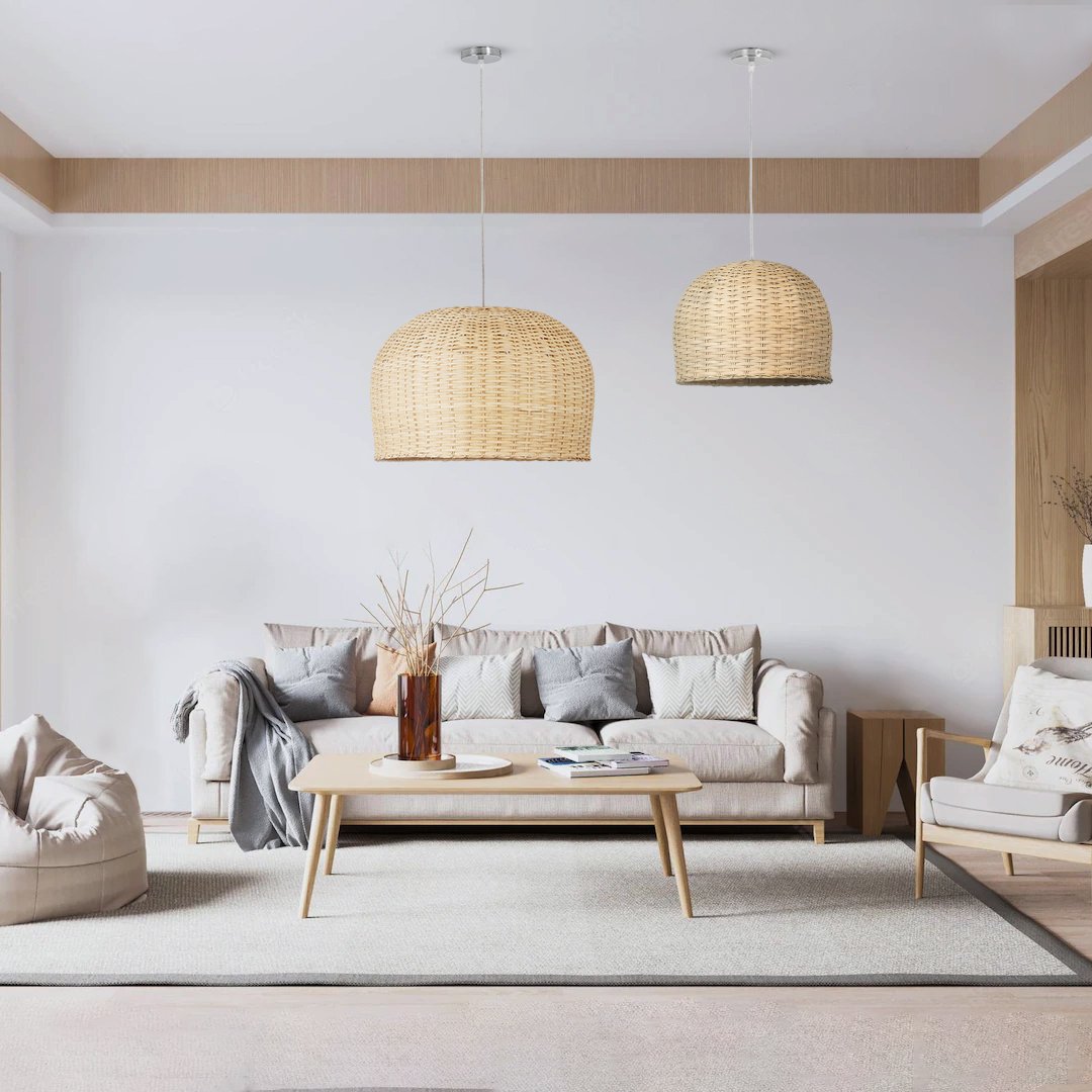 GLOBOSTAR® BERMUDA 01708 Boho Κρεμαστό Φωτιστικό Οροφής με Ντουί 1 x E27 AC 220-240V IP20 – Μπεζ – Μ31 x Π31 x Y22cm