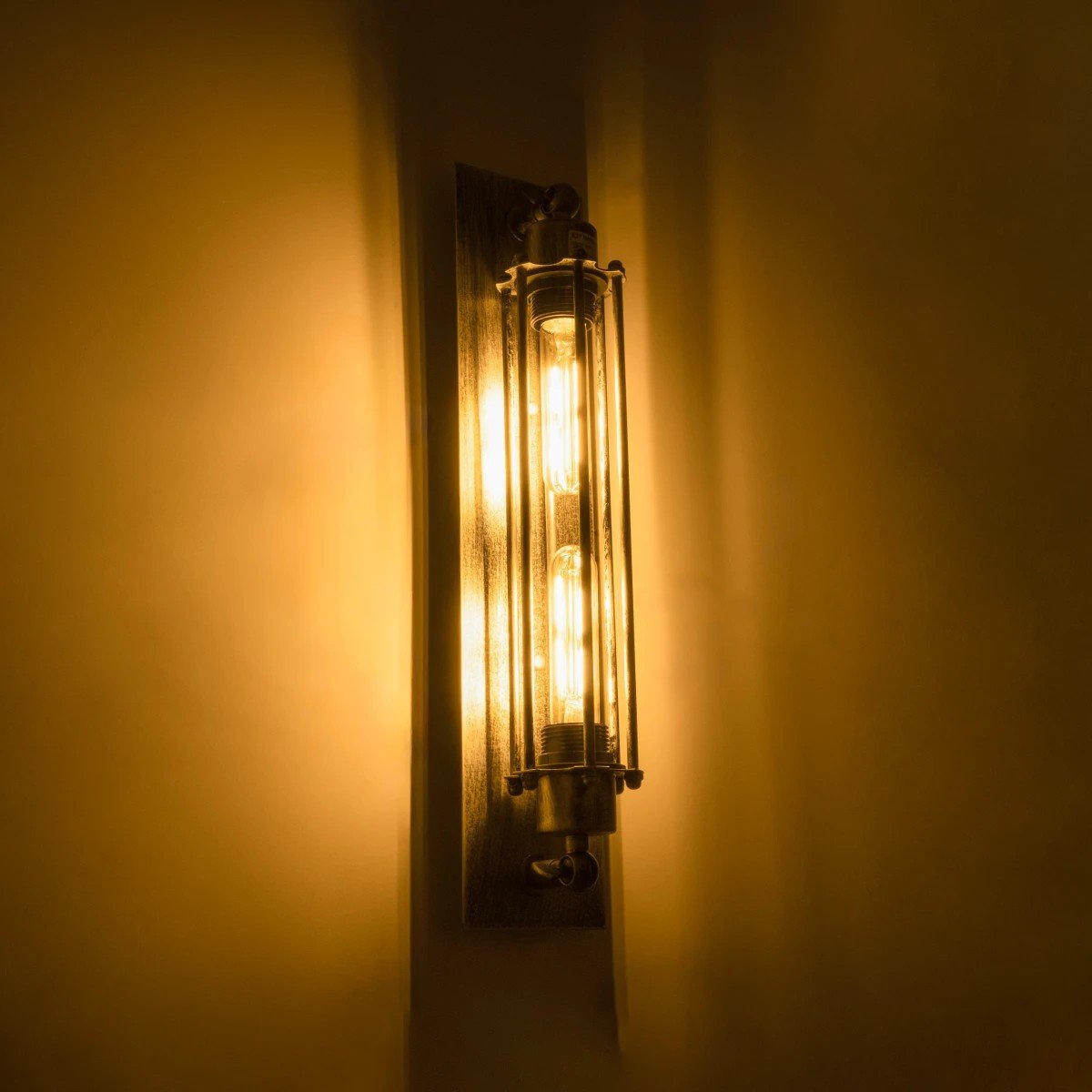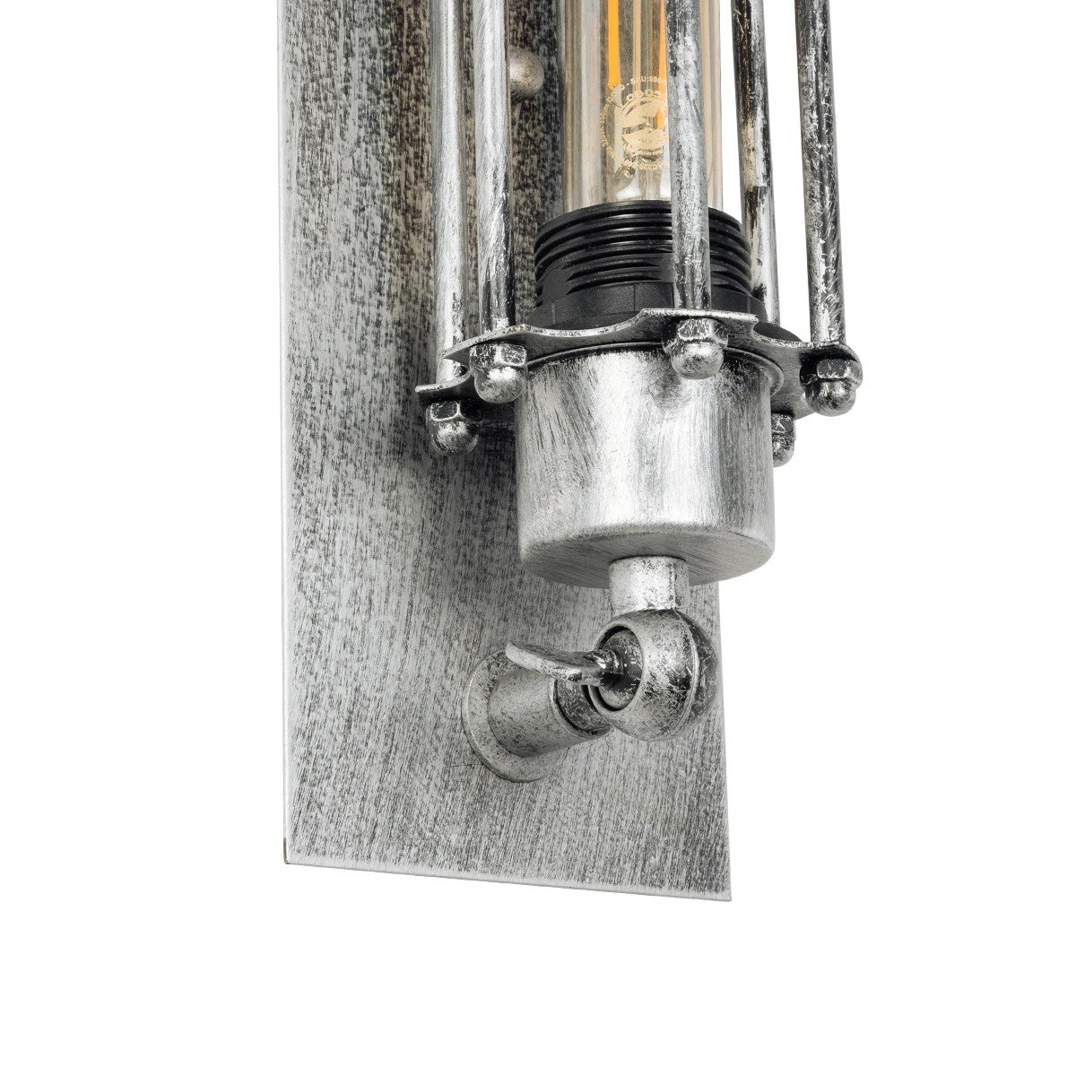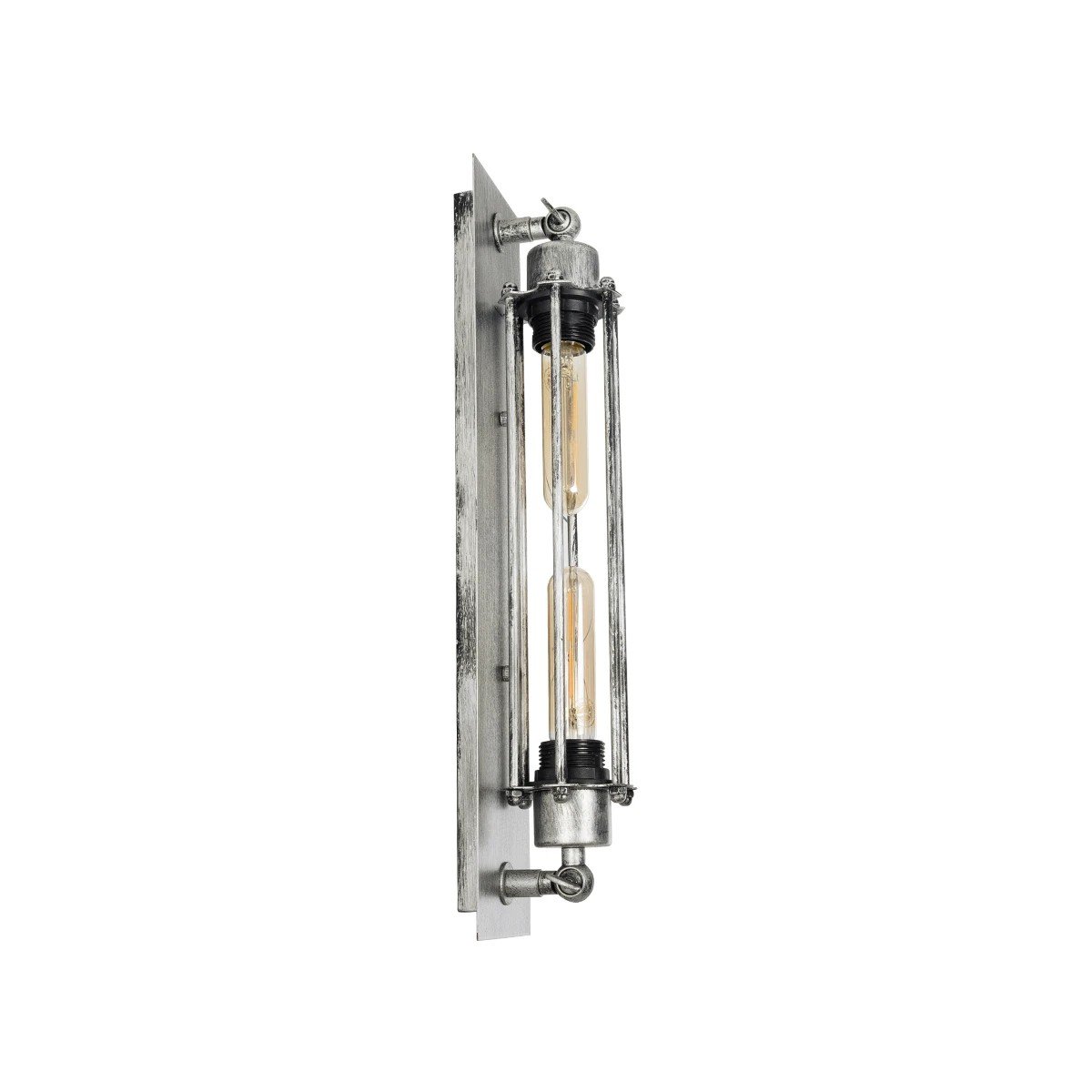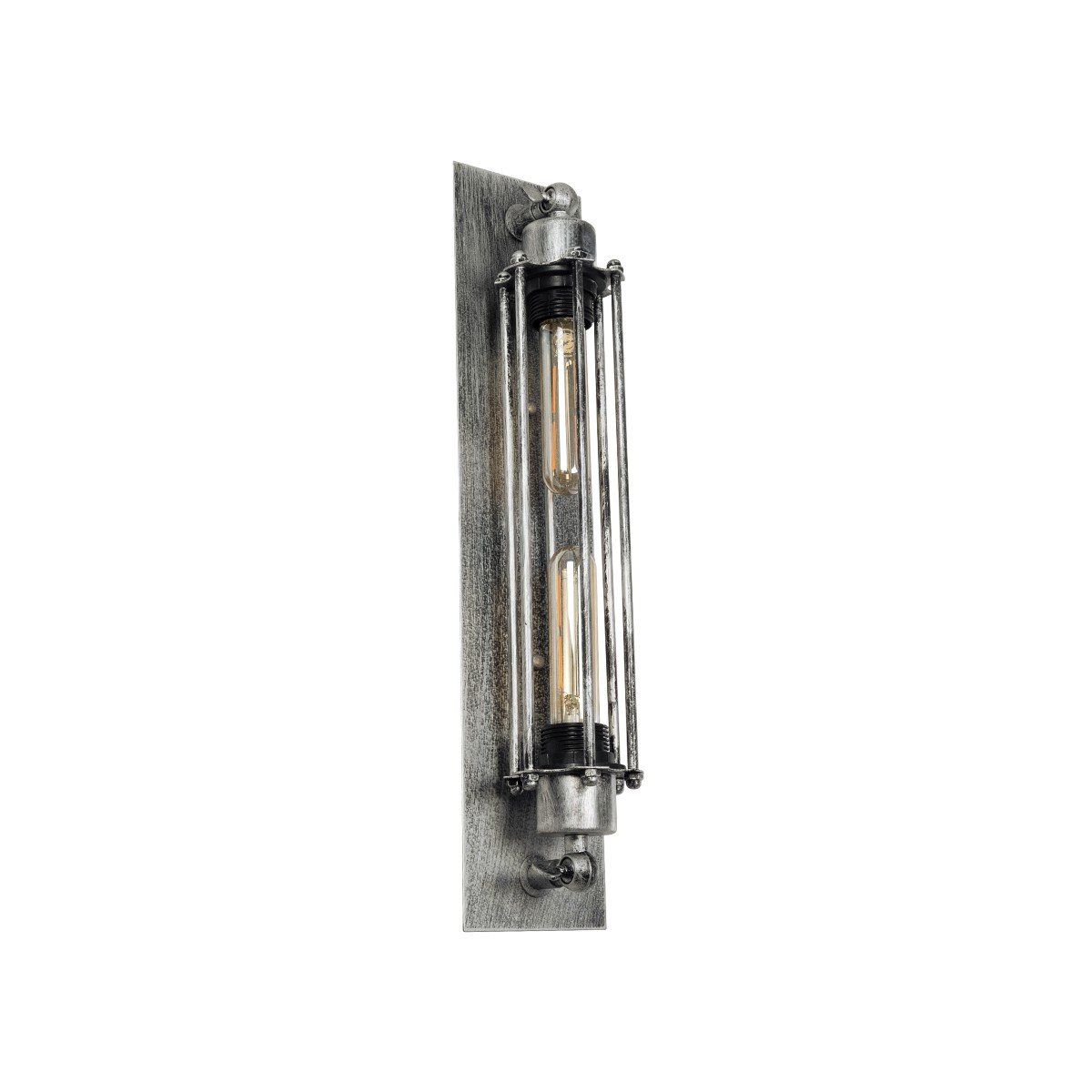 GLOBOSTAR® BESPOKE 01567 Vintage Φωτιστικό Τοίχου – Απλίκα με Ντουί 2 x E27 AC 220-240V IP20 – Ασημί Εφέ Σκουριάς – Μ10 x Π11 x Υ47cm