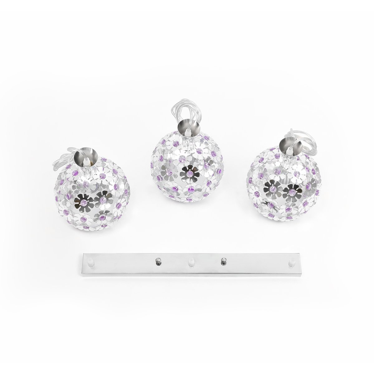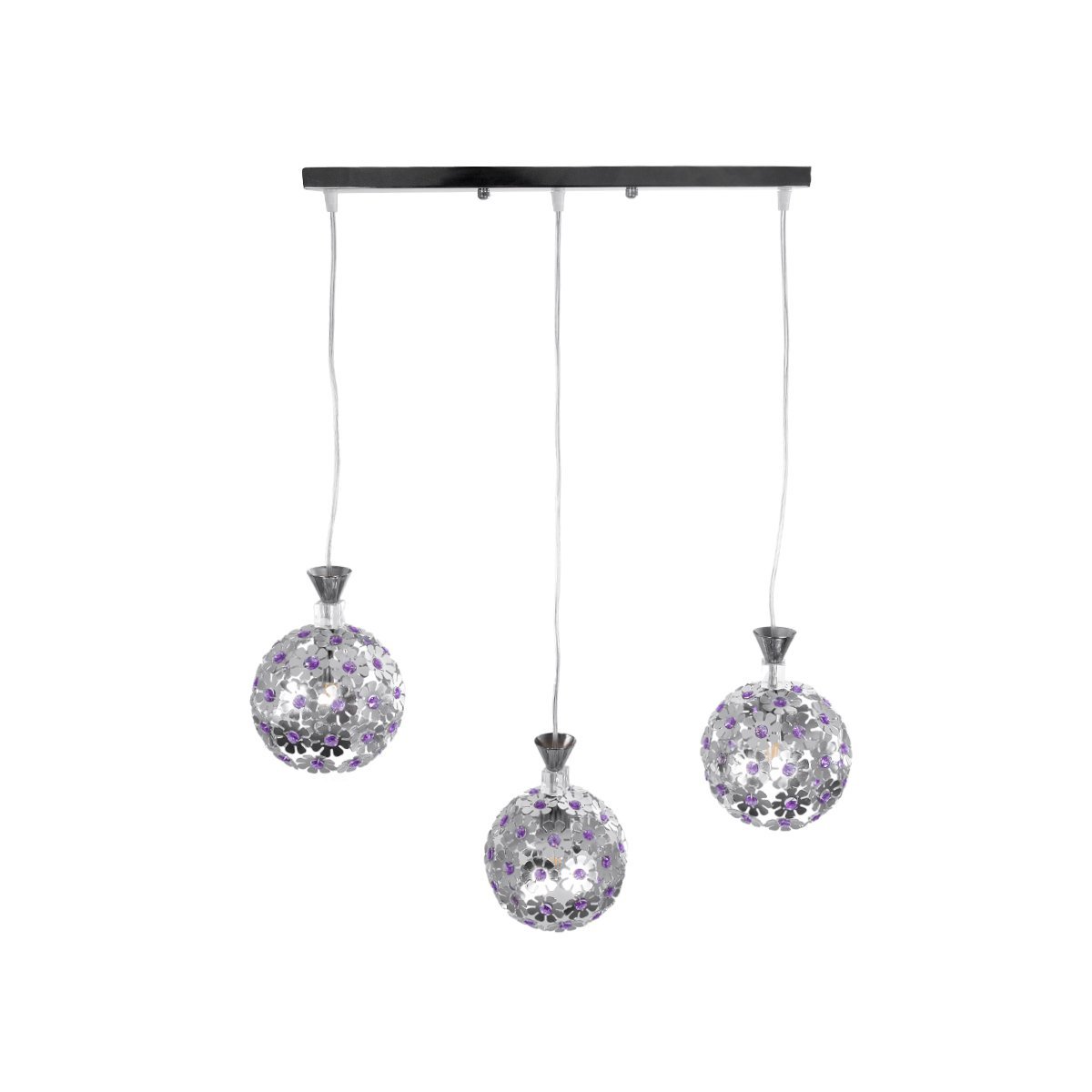 GLOBOSTAR® BOUQUET 01249 Μοντέρνο Κρεμαστό Φωτιστικό Οροφής με Ντουί 3 x E27 AC 220-240V IP20 – Ασημί & Μωβ – Μ66 x Π18 x Υ24cm