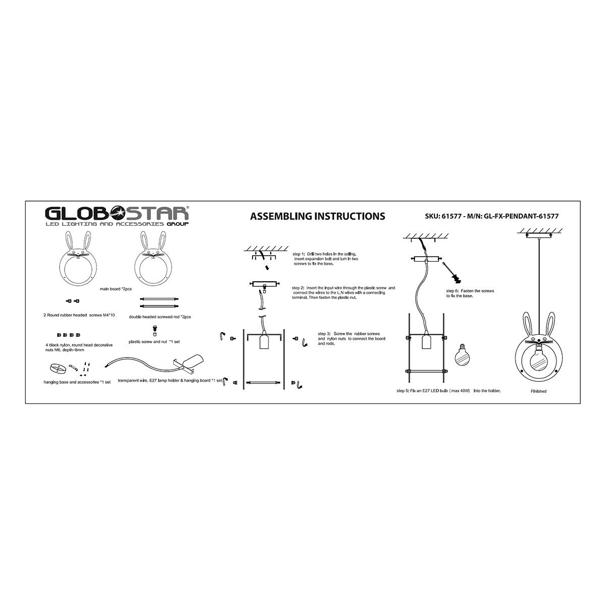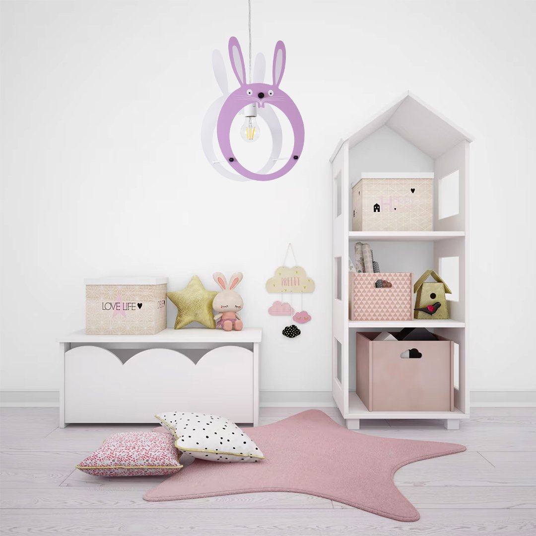 GLOBOSTAR® BUNNY 61577 Παιδικό Κρεμαστό Φωτιστικό Οροφής με Ντουί 1 x E27 AC 220-240V IP20 – Ροζ & Λευκό – Μ27.2 x Π15.5 x Υ40cm