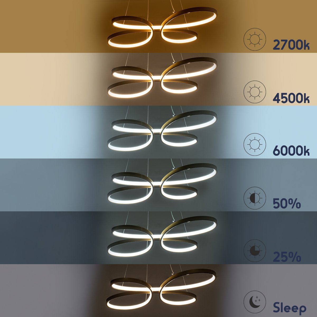 GLOBOSTAR® BUTTERFLY 61393 Μοντέρνο Κρεμαστό Φωτιστικό Οροφής LED 75W 8400lm 300° AC 220-240V IP20 Ρυθμιζόμενο Λευκό CCT με Χειριστήριο από 2700K έως 6000K Dimmable – Lumileds SMD Chip – Χρυσό Βούρτσας – Μ70 x Π55 x Υ4cm – 3 Χρόνια Εγγύηση