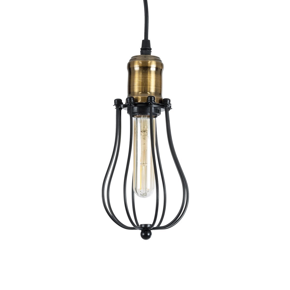 GLOBOSTAR® CAMBER 01016 Vintage Κρεμαστό Φωτιστικό Οροφής με Ντουί 1 x E27 AC 220-240V IP20 – Μαύρο & Χρυσό – Μ12 x Π12 x Υ18cm