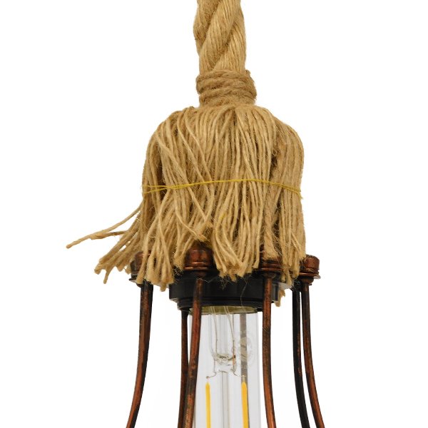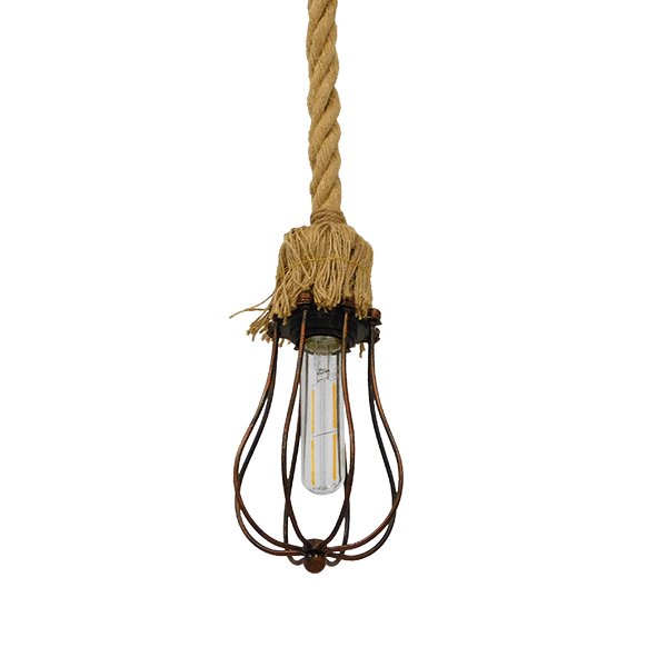 GloboStar® CAMBER 01595 Vintage Industrial Κρεμαστό Φωτιστικό Οροφής Μονόφωτο Καφέ Σκουριά Μεταλλικό Πλέγμα με Μπεζ Σχοινί Φ11 x Υ25cm