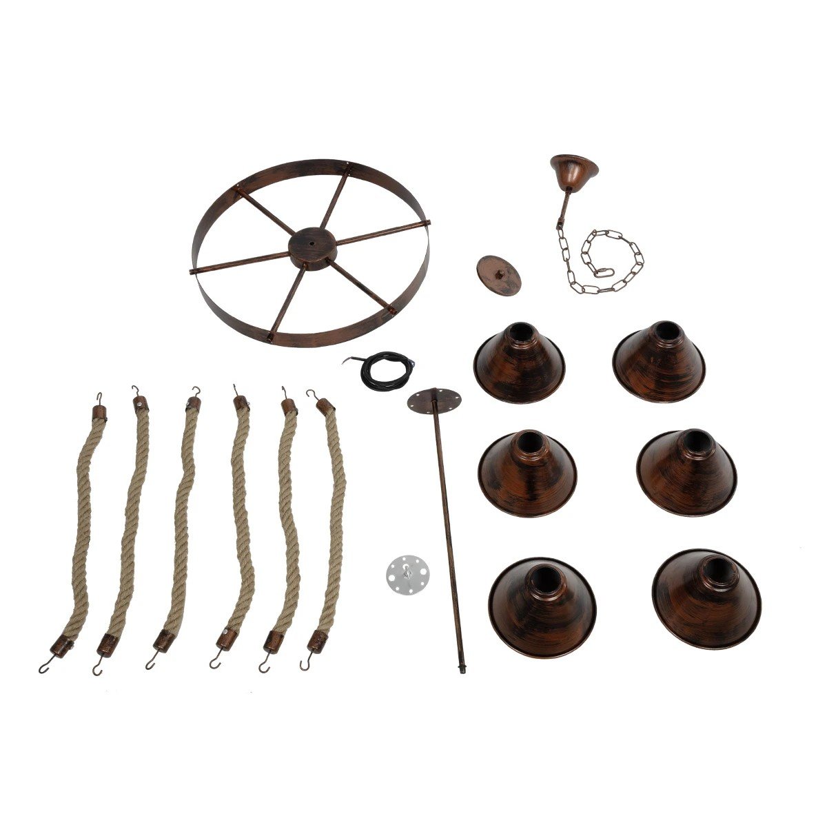 GLOBOSTAR® CAMELOT 10001191 Vintage Κρεμαστό Φωτιστικό Οροφής με Ντουί 6 x E27 AC 220-240V IP20 – Χάλκινο & Μπεζ – Μ95 x Π95 x Υ65cm