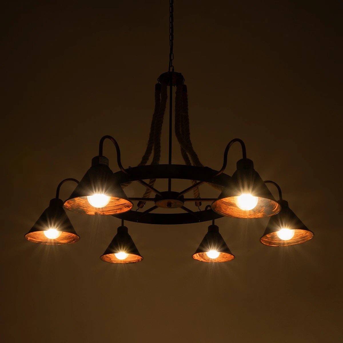 - Τεχνοτροπία Φωτιστικού: Μεταλλικό Πολυέλαιος – Μπεζ Σχοινί