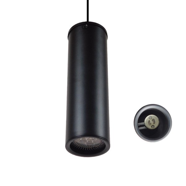 GloboStar® CANNON BLACK 01275 Μοντέρνο Κρεμαστό Φωτιστικό Οροφής Spot Gu10 Μονόφωτο Μαύρο Μεταλλικό Φ6 x 20cm