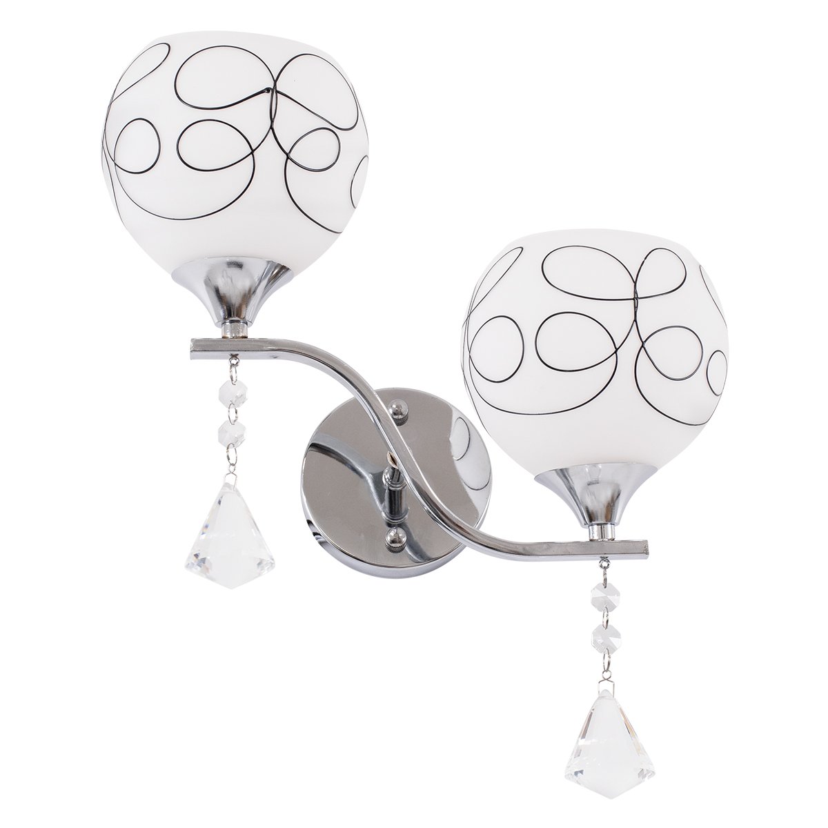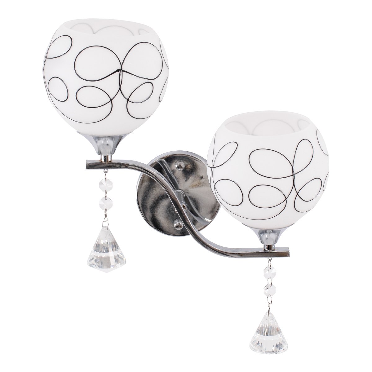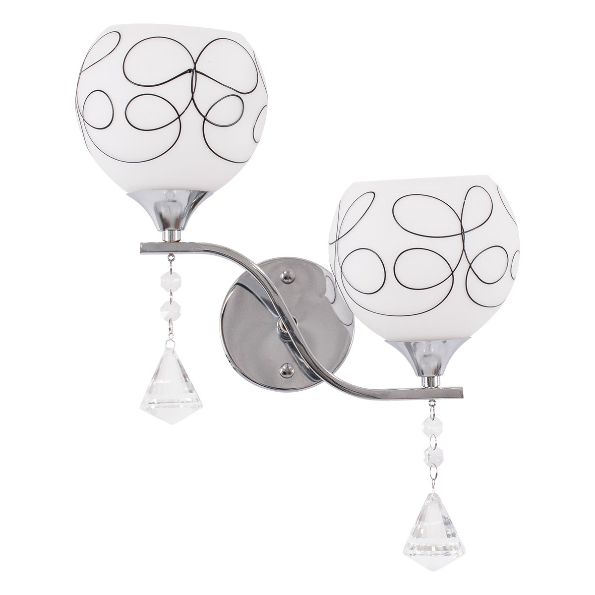 GLOBOSTAR® CANTER 00635 Μοντέρνο Φωτιστικό Τοίχου – Απλίκα με Ντουί 2 x E27 AC 220-240V IP20 – Ασημί & Λευκό – Μ32 x Π15 x Υ40cm