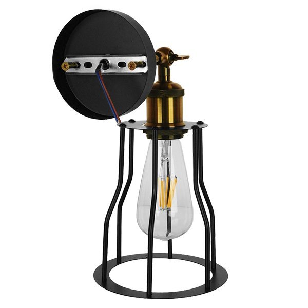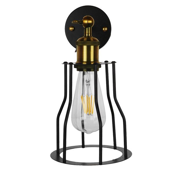 GloboStar® CATEL 01054 Vintage Industrial Φωτιστικό Τοίχου Απλίκα Μονόφωτο Μαύρο Μεταλλικό Πλέγμα Φ15 x Μ26 x Π15 x Υ30cm