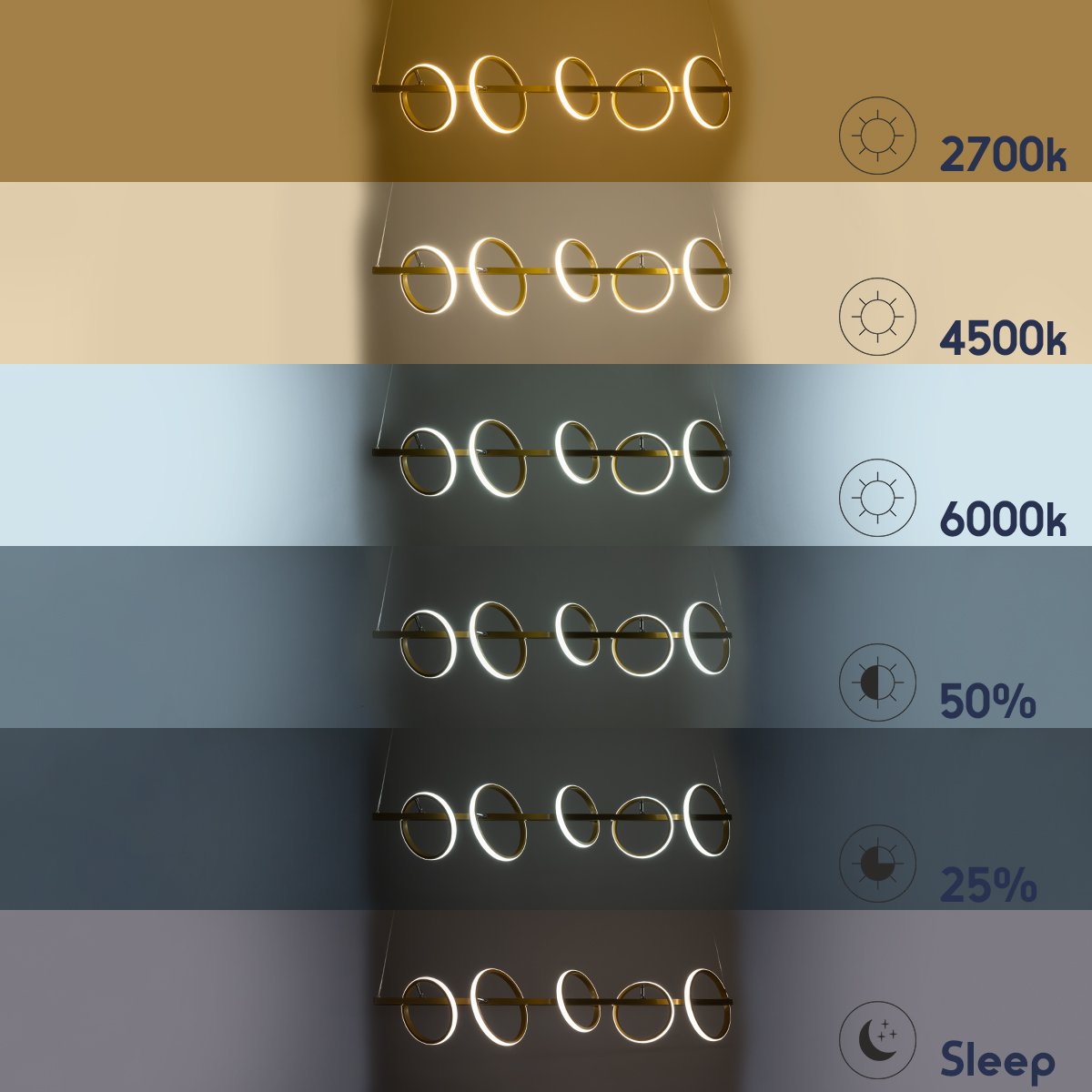 GLOBOSTAR® CIRCOLARE 61322 Μοντέρνο Κρεμαστό Φωτιστικό Οροφής LED 75W 8400lm 360° AC 220-240V IP20 Ρυθμιζόμενο Λευκό CCT με Χειριστήριο από 2700K έως 6000K Dimmable – Lumileds SMD Chip – Χρυσό – Μ120 x Π25 x Υ25cm – 3 Χρόνια Εγγύηση