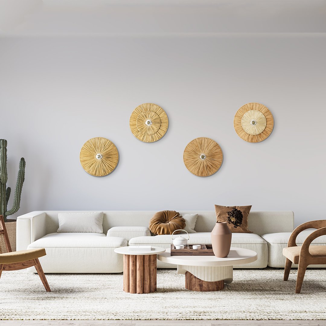 GLOBOSTAR® COLOMBO 02283 Boho Φωτιστικό Τοίχου – Απλίκα με Ντουί 1 x E27 AC 220-240V IP20 – Μπεζ – Μ40 x Π40 x Υ9cm