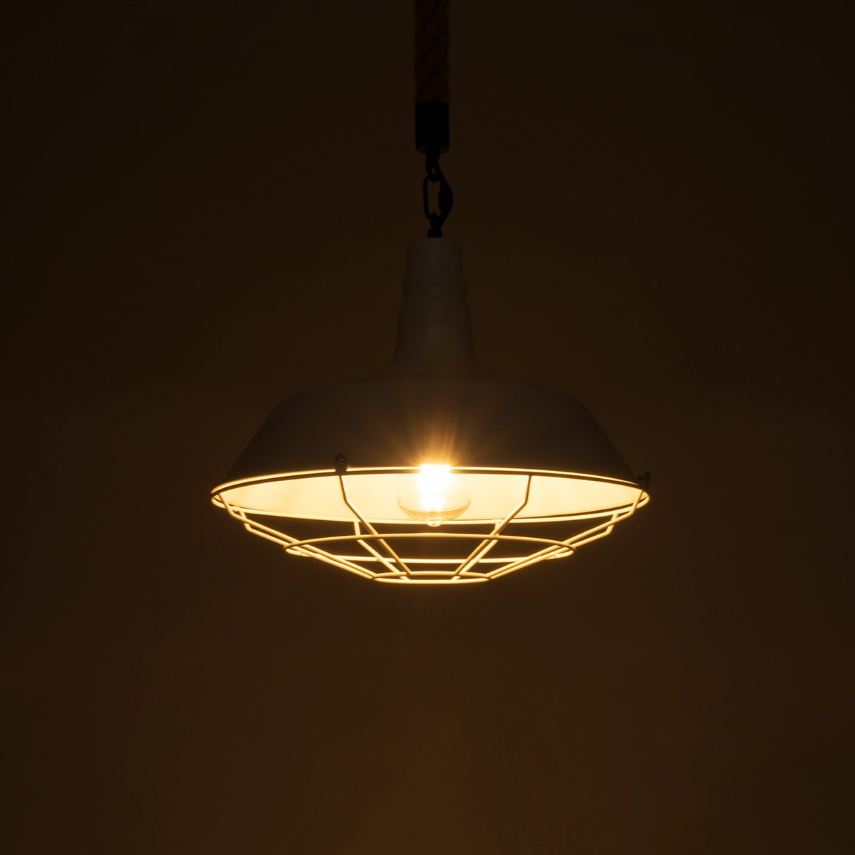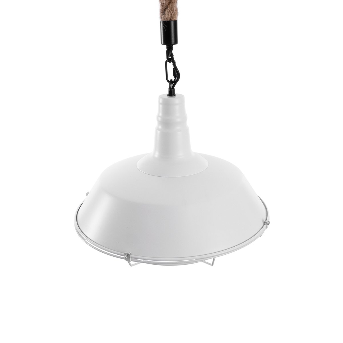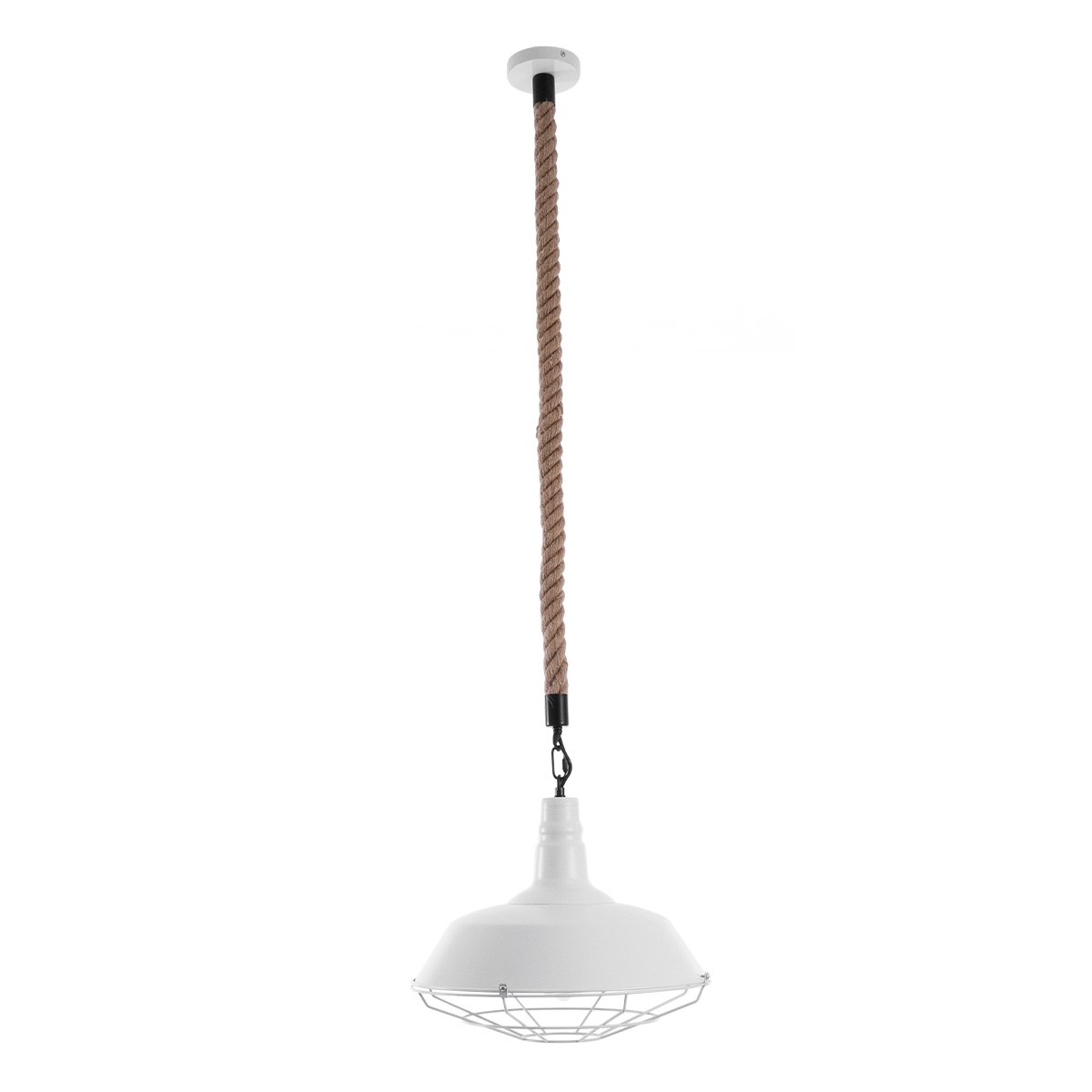 GloboStar® CRANE 01409 Vintage Industrial Κρεμαστό Φωτιστικό Οροφής Μονόφωτο Λευκό Ματ Μεταλλικό Καμπάνα Πλέγμα με Μπεζ Σχοινί Φ36 x Υ31cm