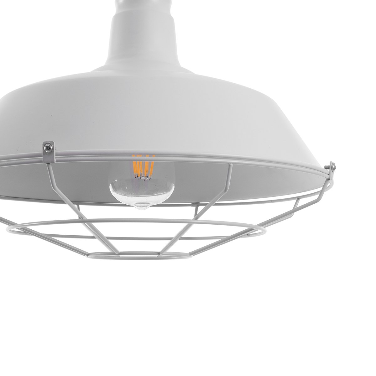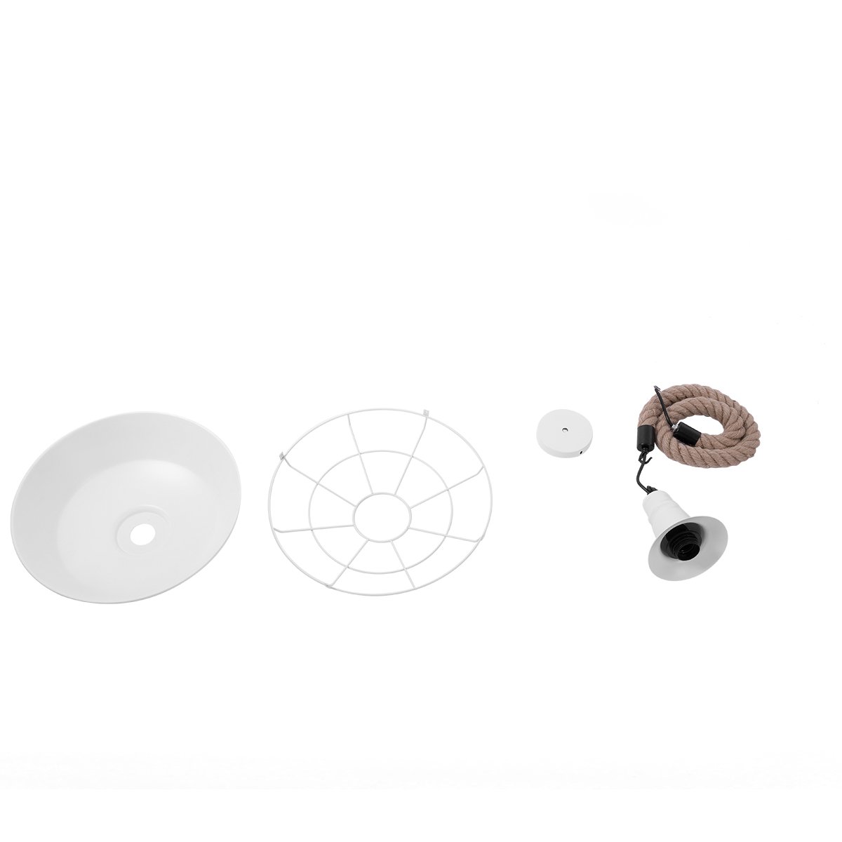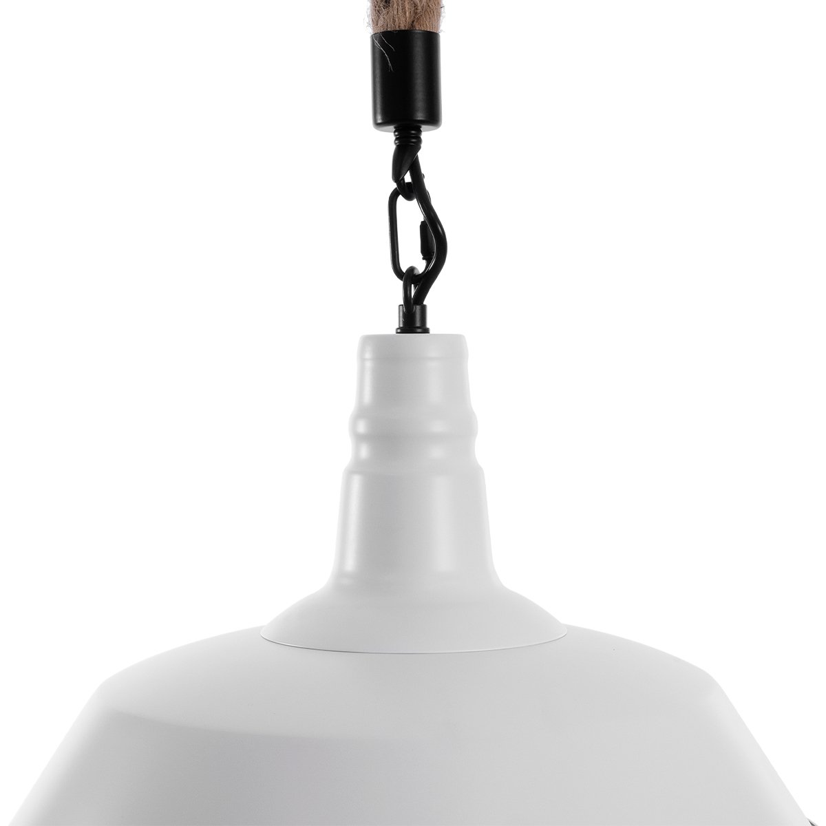 GloboStar® CRANE 01409 Vintage Industrial Κρεμαστό Φωτιστικό Οροφής Μονόφωτο Λευκό Ματ Μεταλλικό Καμπάνα Πλέγμα με Μπεζ Σχοινί Φ36 x Υ31cm
