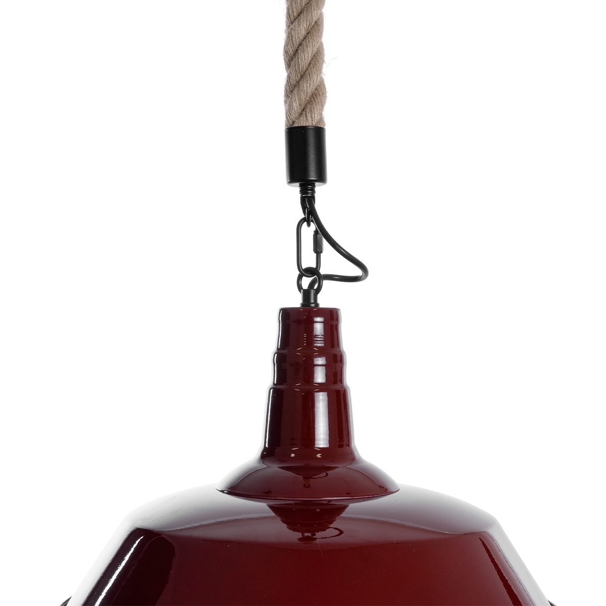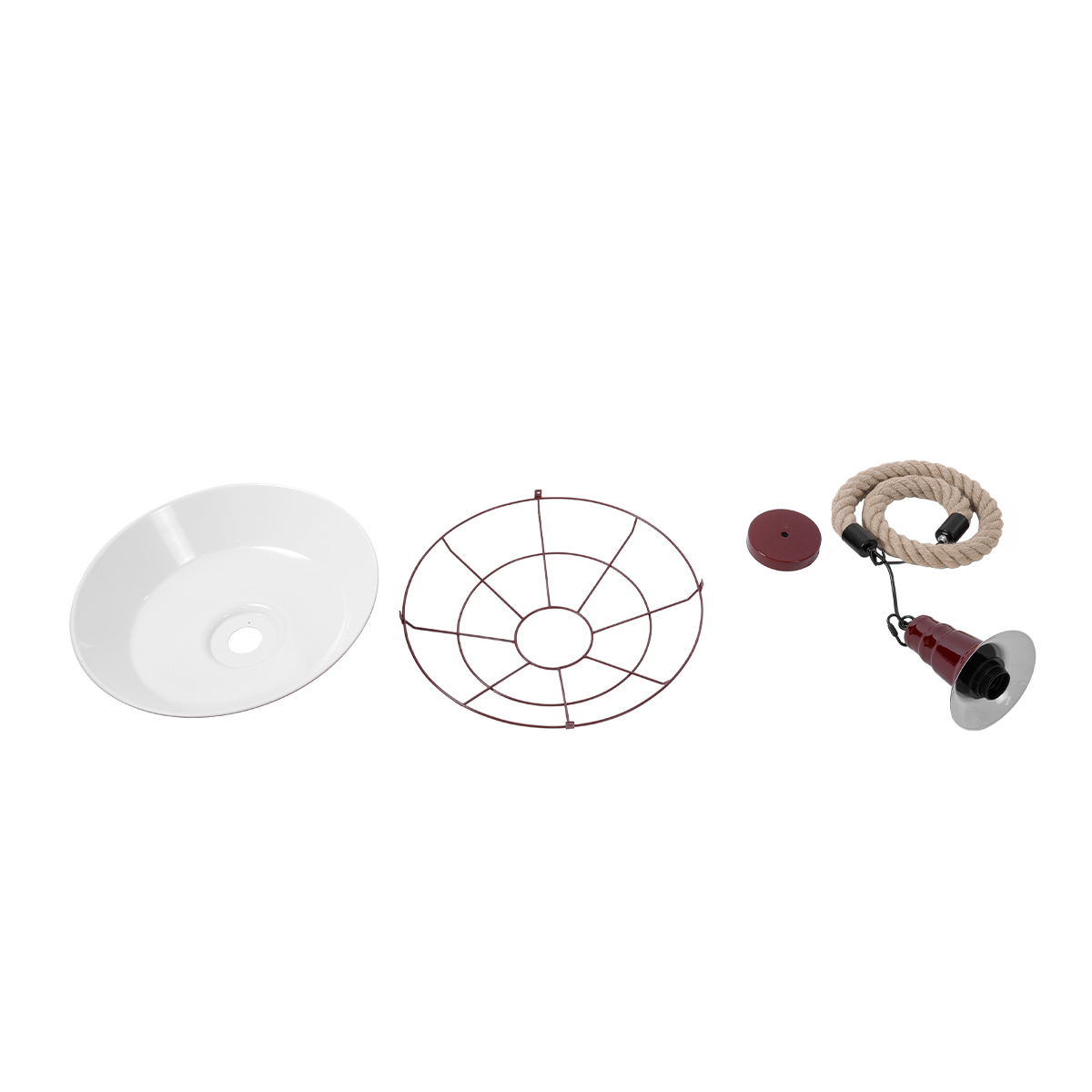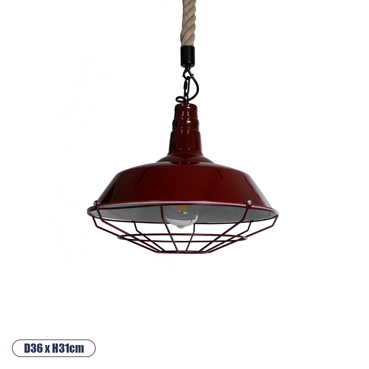 GloboStar® CRANE 01410 Vintage Industrial Κρεμαστό Φωτιστικό Οροφής Μονόφωτο Μπορντό Κόκκινο Λευκό Μεταλλικό Καμπάνα Πλέγμα με Μπεζ Σχοινί Φ36 x Υ31cm