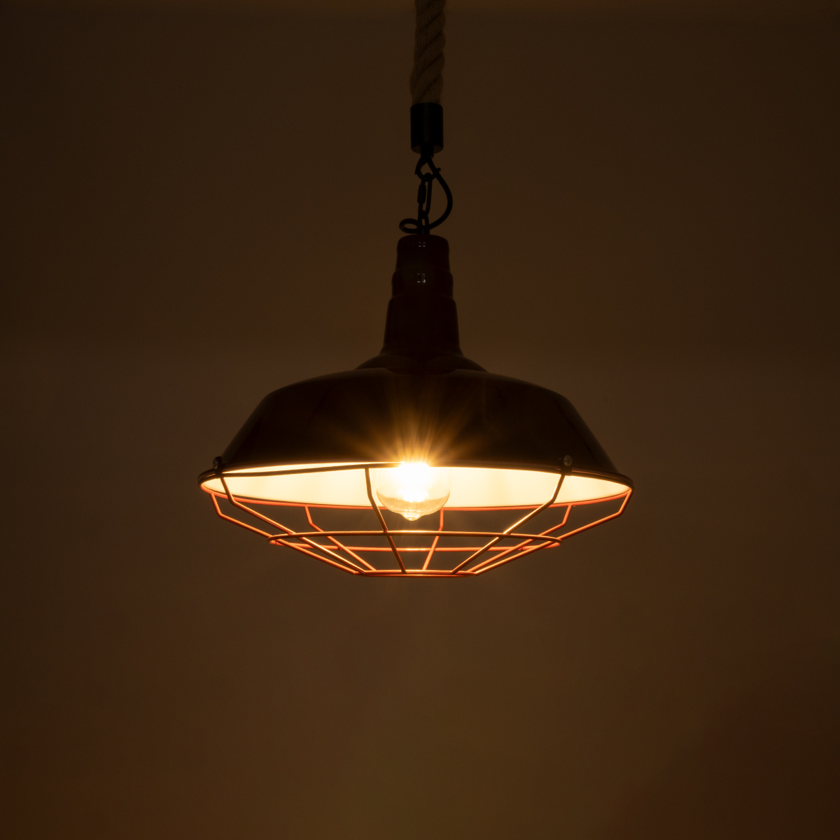 - Τεχνοτροπία Φωτιστικού: Καμπάνα Μεταλλικό Πλέγμα με Σχοινί