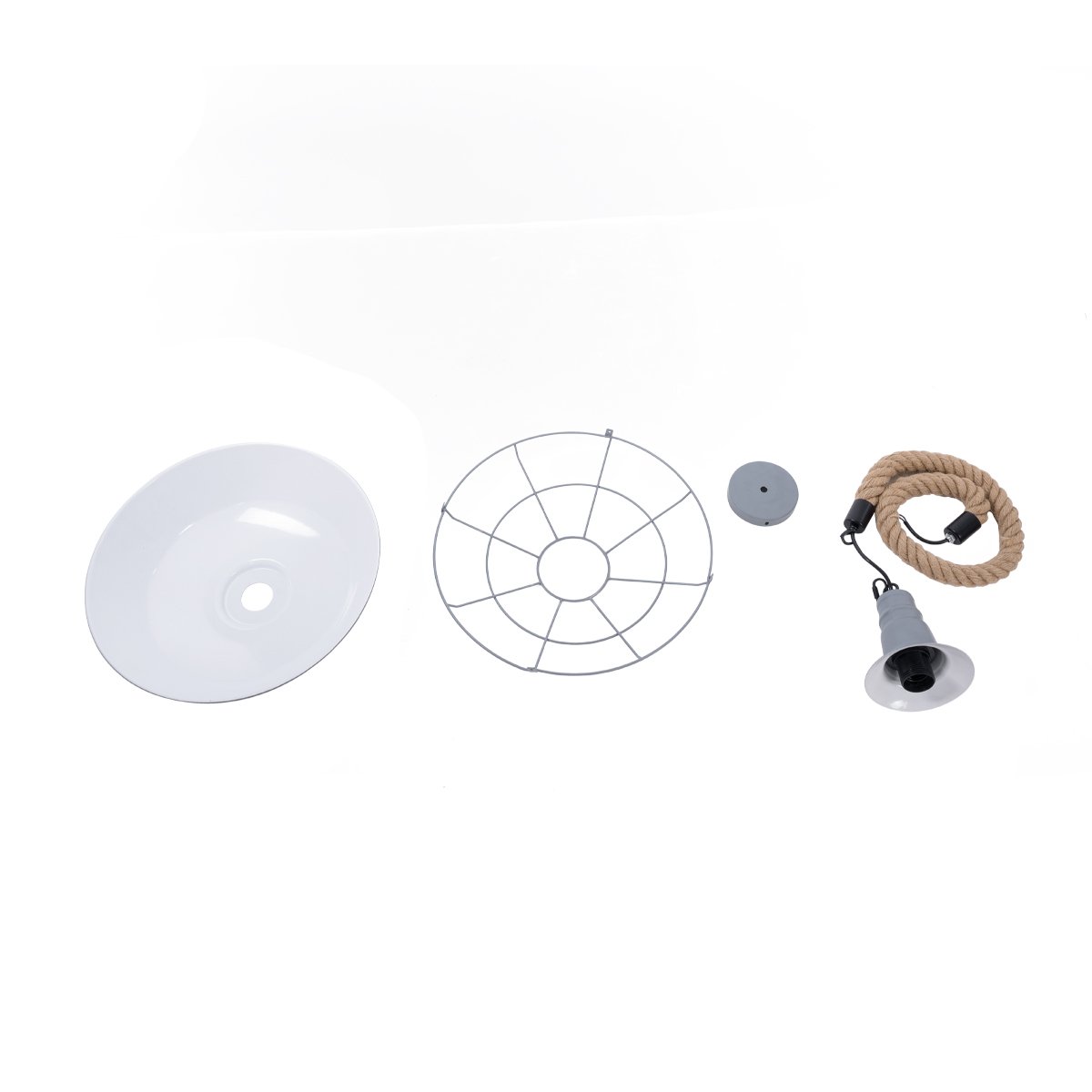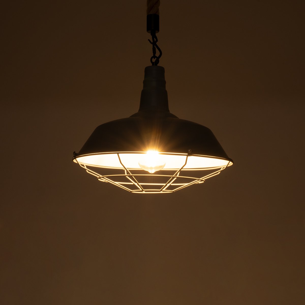 - Τεχνοτροπία Φωτιστικού: Καμπάνα Μεταλλικό Πλέγμα με Σχοινί