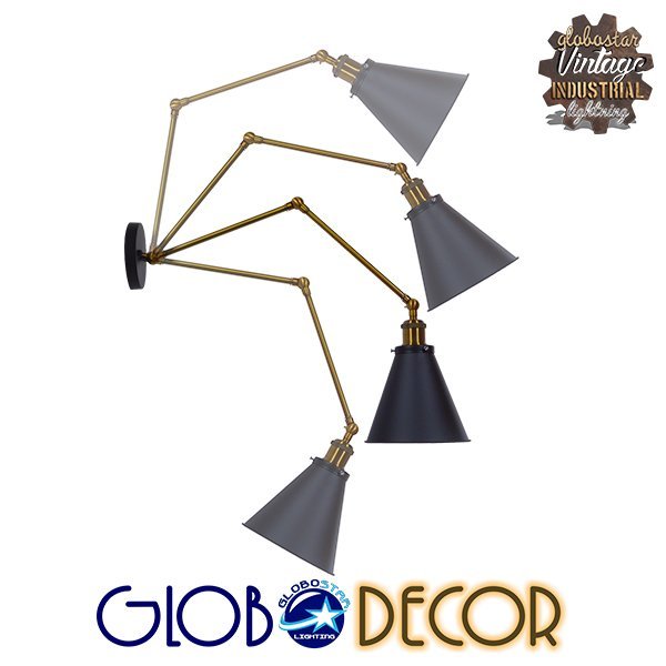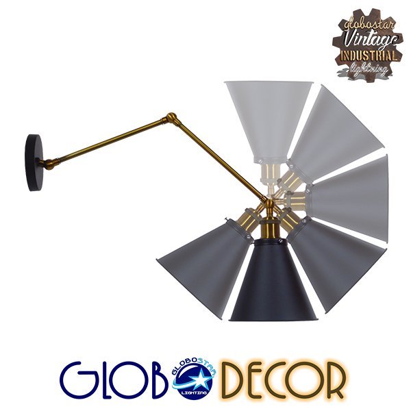 GloboStar® CRUCE 01037 Vintage Industrial Φωτιστικό Τοίχου Απλίκα Μονόφωτο με Σπαστό Μεταλλικό Βραχίονα και Μαύρη Καμπάνα Φ19 x Μ63 x Π19 x Υ77cm