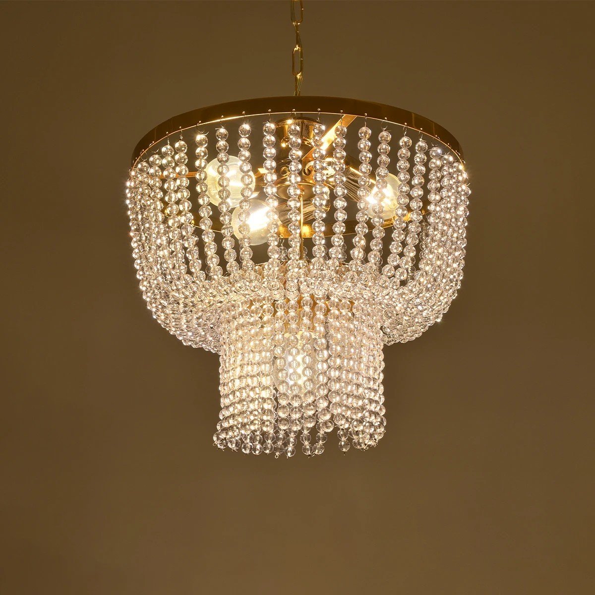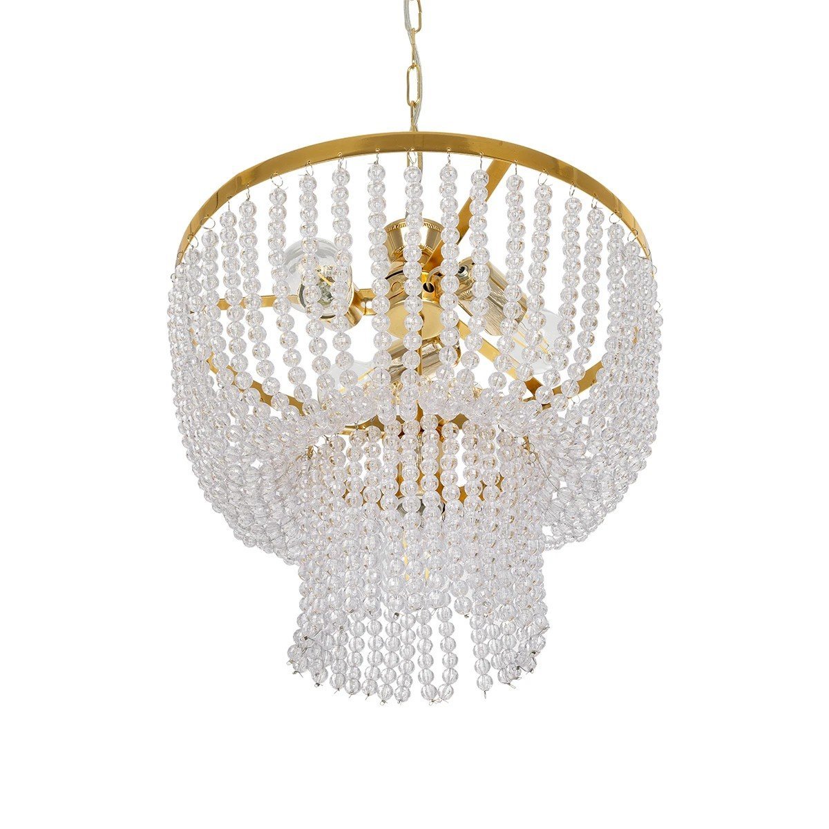 GLOBOSTAR® CRYSTAL 203-0028 Κλασικό Κρεμαστό Φωτιστικό Οροφής με Ντουί 3 x E27 AC 220-240V IP20 – Χρυσό & Διάφανο – Μ41 x Π41 x Υ40cm