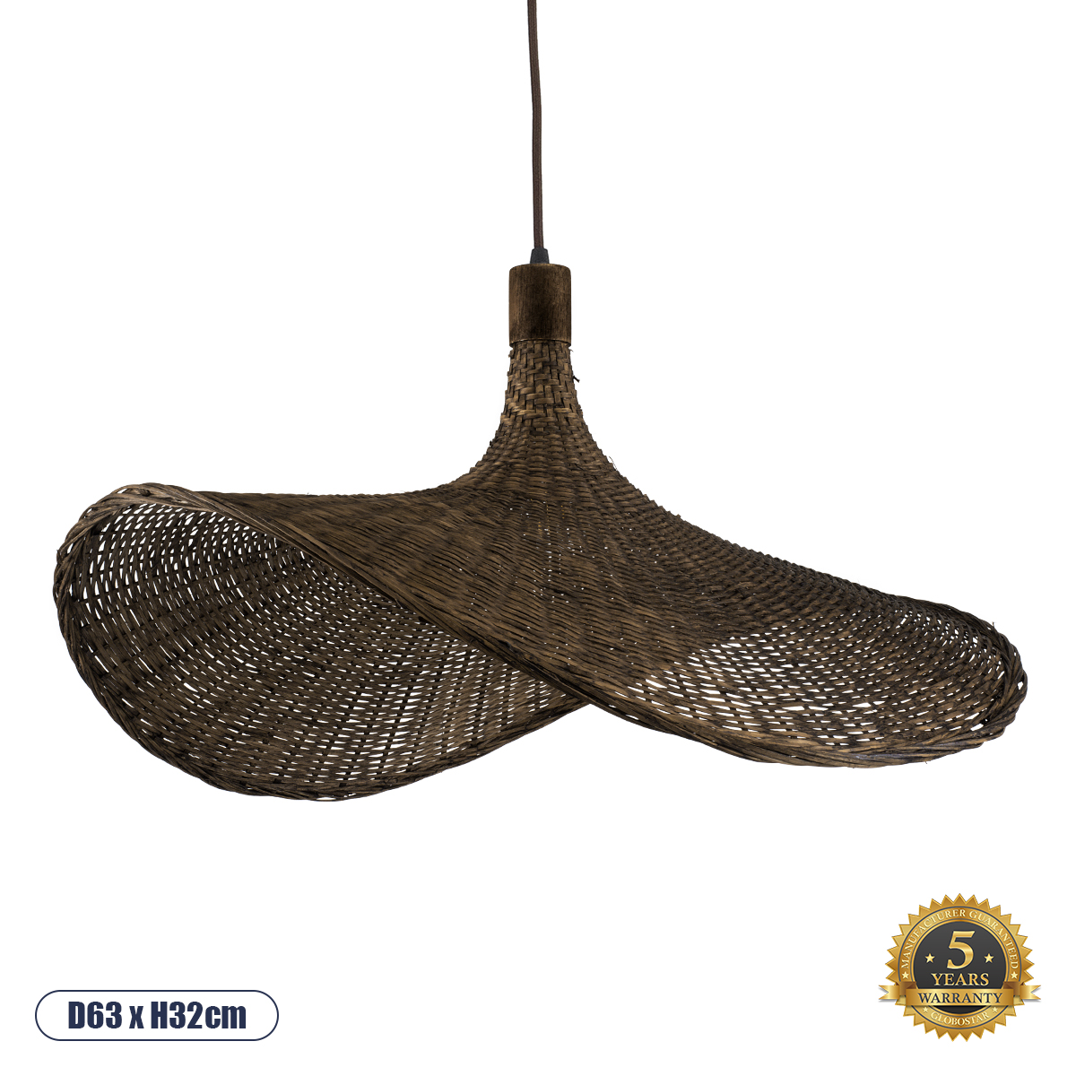 GLOBOSTAR® CUBA 01722 Boho Κρεμαστό Φωτιστικό Οροφής με Ντουί 1 x E27 AC 220-240V IP20 – Καφέ – Μ63 x Π63 x Υ32cm