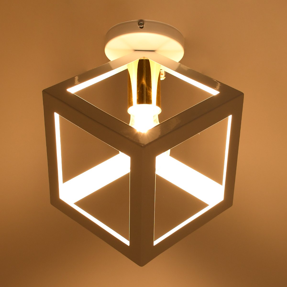 GLOBOSTAR® CUBE 00800 Μοντέρνο Φωτιστικό Οροφής με Ντουί 1 x E27 AC 220-240V IP20 – Λευκό & Χρυσό – Μ25 x Π25 x Υ25cm