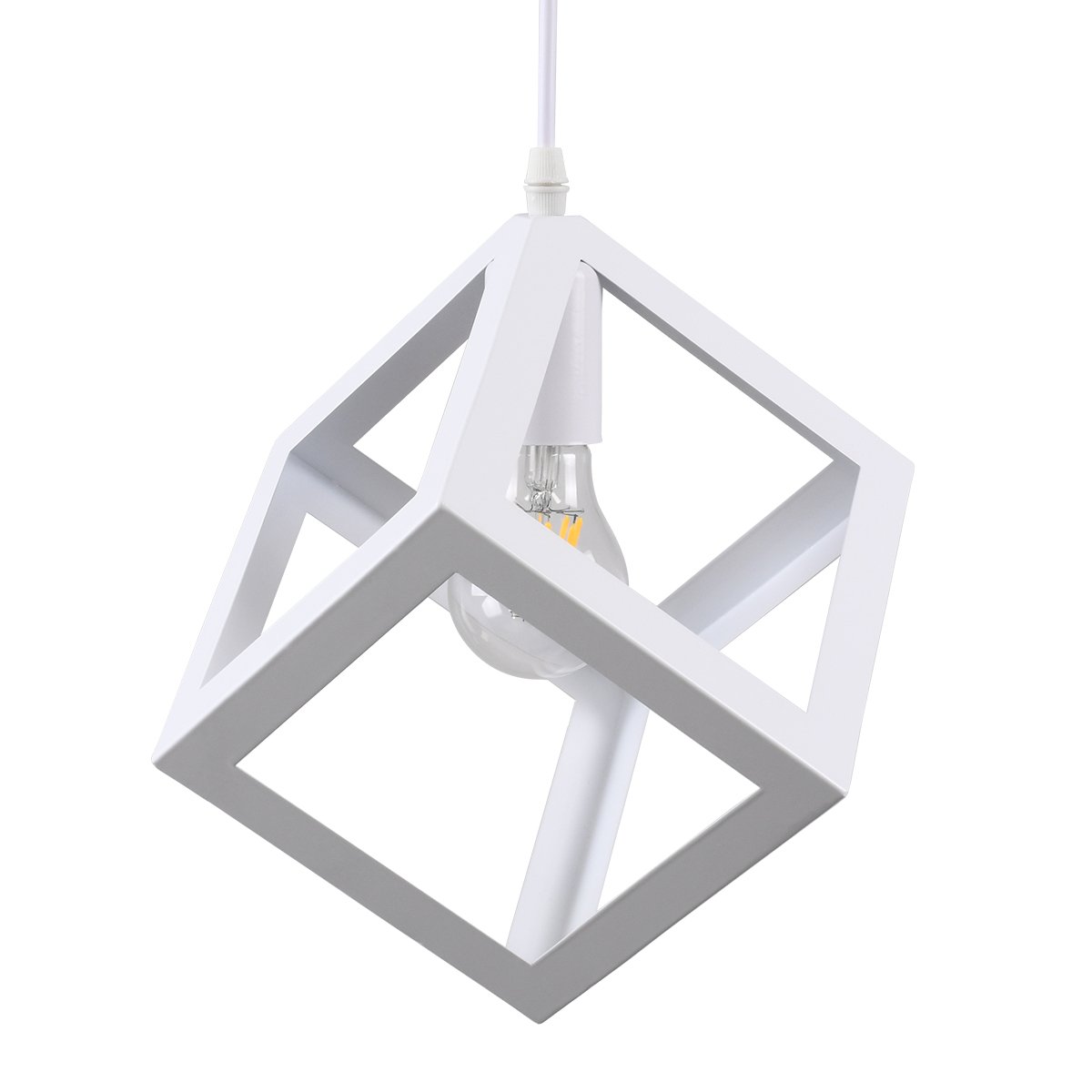 GLOBOSTAR® CUBE 00802 Μοντέρνο Κρεμαστό Φωτιστικό Οροφής με Ντουί 1 x E27 AC 220-240V IP20 – Λευκό – Μ25 x Π25 x Υ25cm