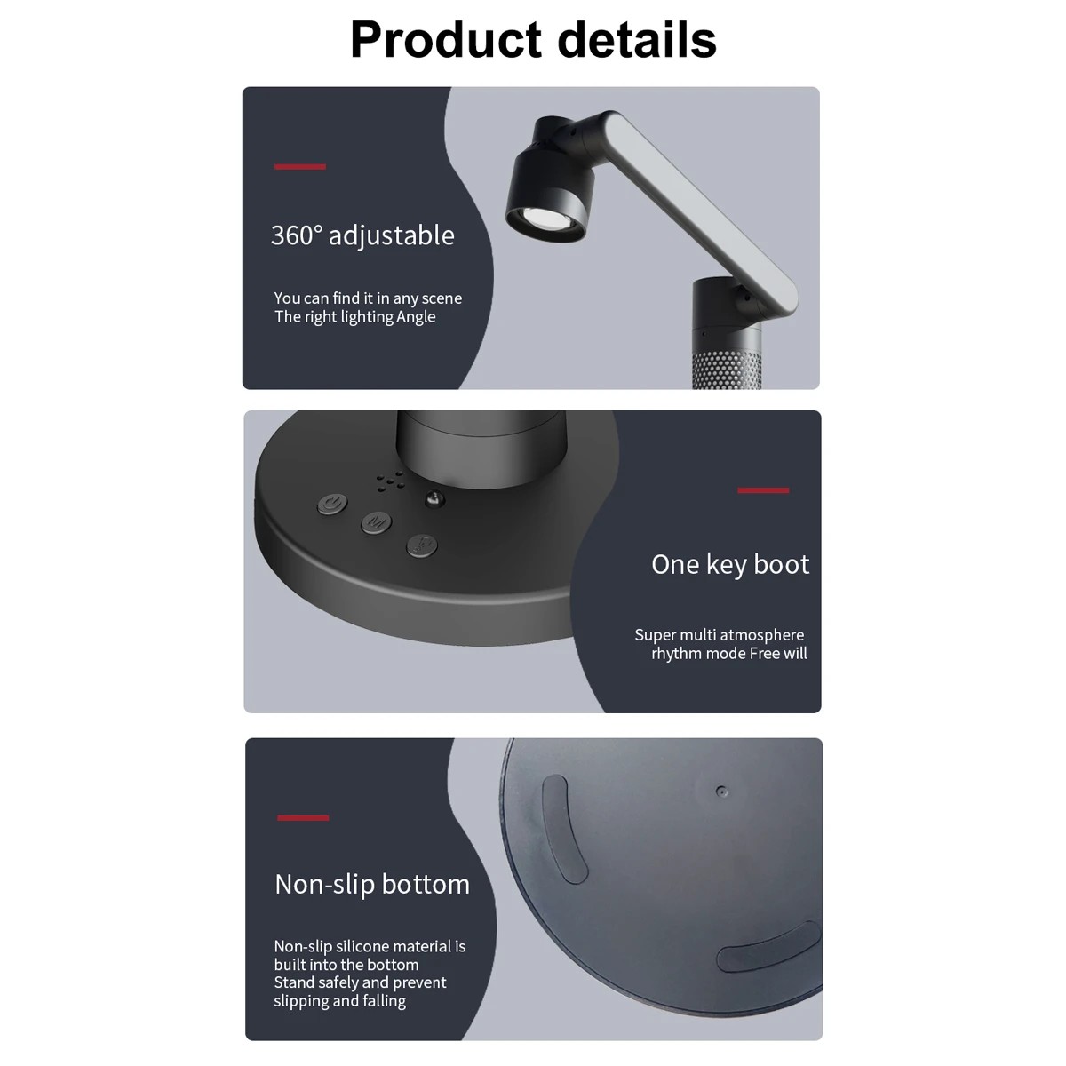 GLOBOSTAR® DESTINY GLB-106-0020 Επιτραπέζιο Φωτιστικό Πορτατίφ με RF Ασύρματο Χειριστήριο & Λειτουργία μέσω WiFi APP LED 10W 600lm 180° AC 220-240V IP20 Πολύχρωμο RGB Dimmable – Sanan SMD Chip – Μαύρο – Μ14 x Π14 x Υ50cm – 2 Χρόνια Εγγύηση