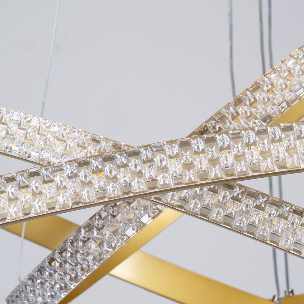 GLOBOSTAR® DIAMOND TRIO 61139-DECO Μοντέρνο Κρεμαστό Φωτιστικό Οροφής LED 120W 14723lm 360° AC 220-240V IP20 Ρυθμιζόμενο Λευκό CCT με Χειριστήριο από 2700K έως 6000K Dimmable – Lumileds SMD Chip – Χρυσό Βούρτσας – Μ80 x Π80 x Υ80cm – 3 Χρόνια Εγγύηση
