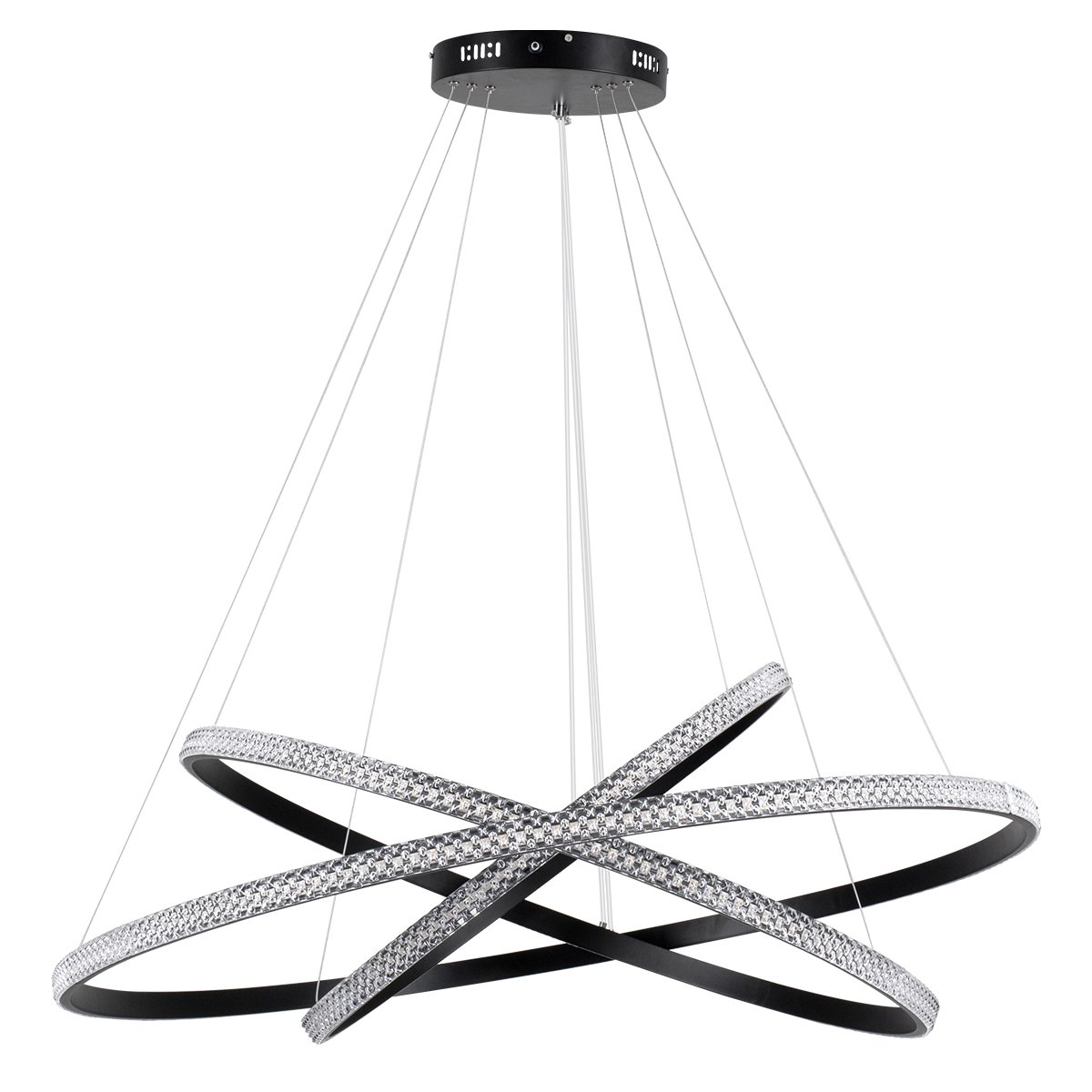 GLOBOSTAR® DIAMOND TRIO 61140-DECO Μοντέρνο Κρεμαστό Φωτιστικό Οροφής LED 150W 18379lm 360° AC 220-240V IP20 Ρυθμιζόμενο Λευκό CCT με Χειριστήριο από 2700K έως 6000K Dimmable – Lumileds SMD Chip – Μαύρο Ματ – Μ100 x Π100 x Υ100cm – 3 Χρόνια Εγγύηση