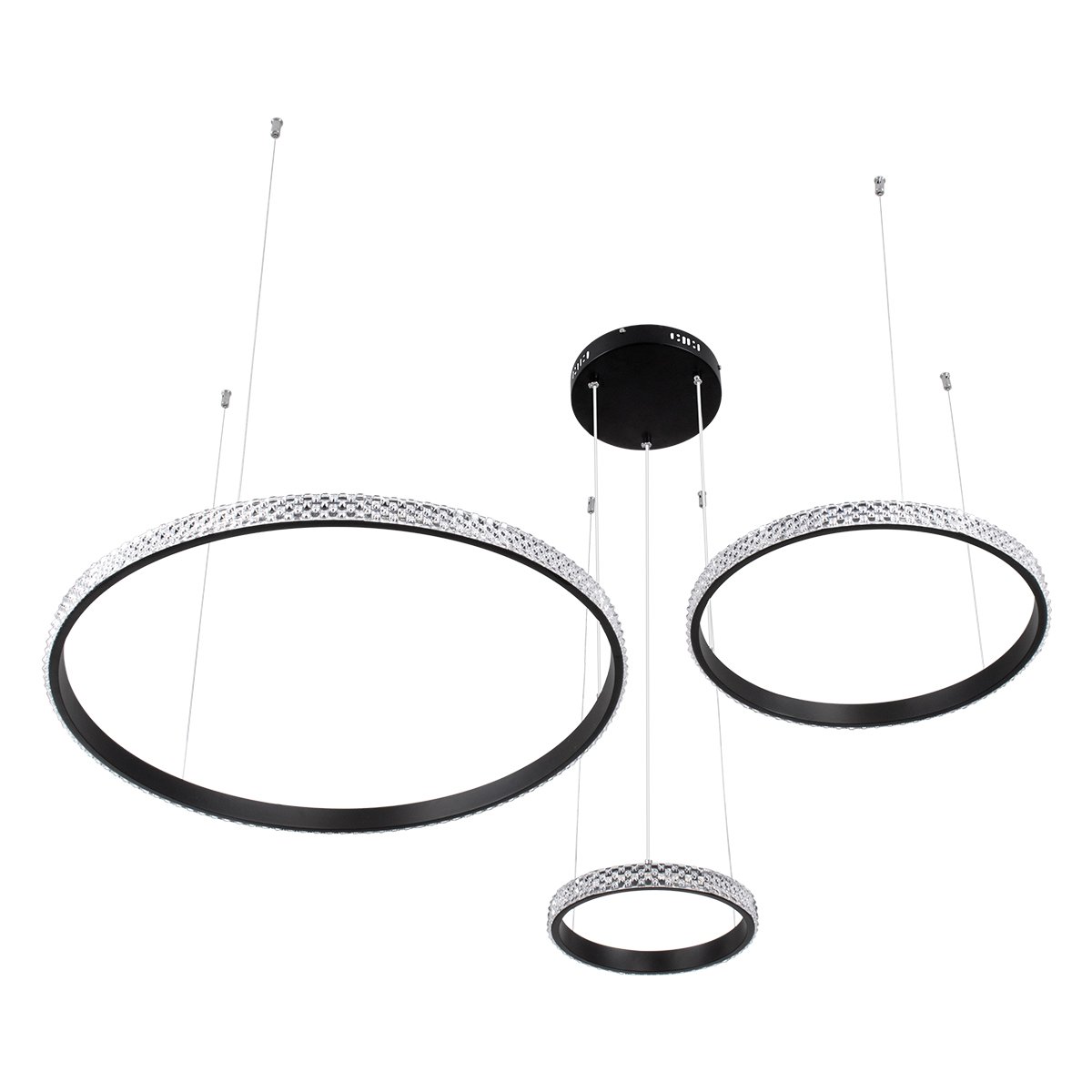 GLOBOSTAR® DIAMOND TRIO 61142 Μοντέρνο Κρεμαστό Φωτιστικό Οροφής LED 100W 12123lm 360° AC 220-240V IP20 Ρυθμιζόμενο Λευκό CCT με Χειριστήριο από 2700K έως 6000K Dimmable – Lumileds SMD Chip – Μαυρό Ματ – Μ110 x Π110 x Υ60cm – 3 Χρόνια Εγγύηση