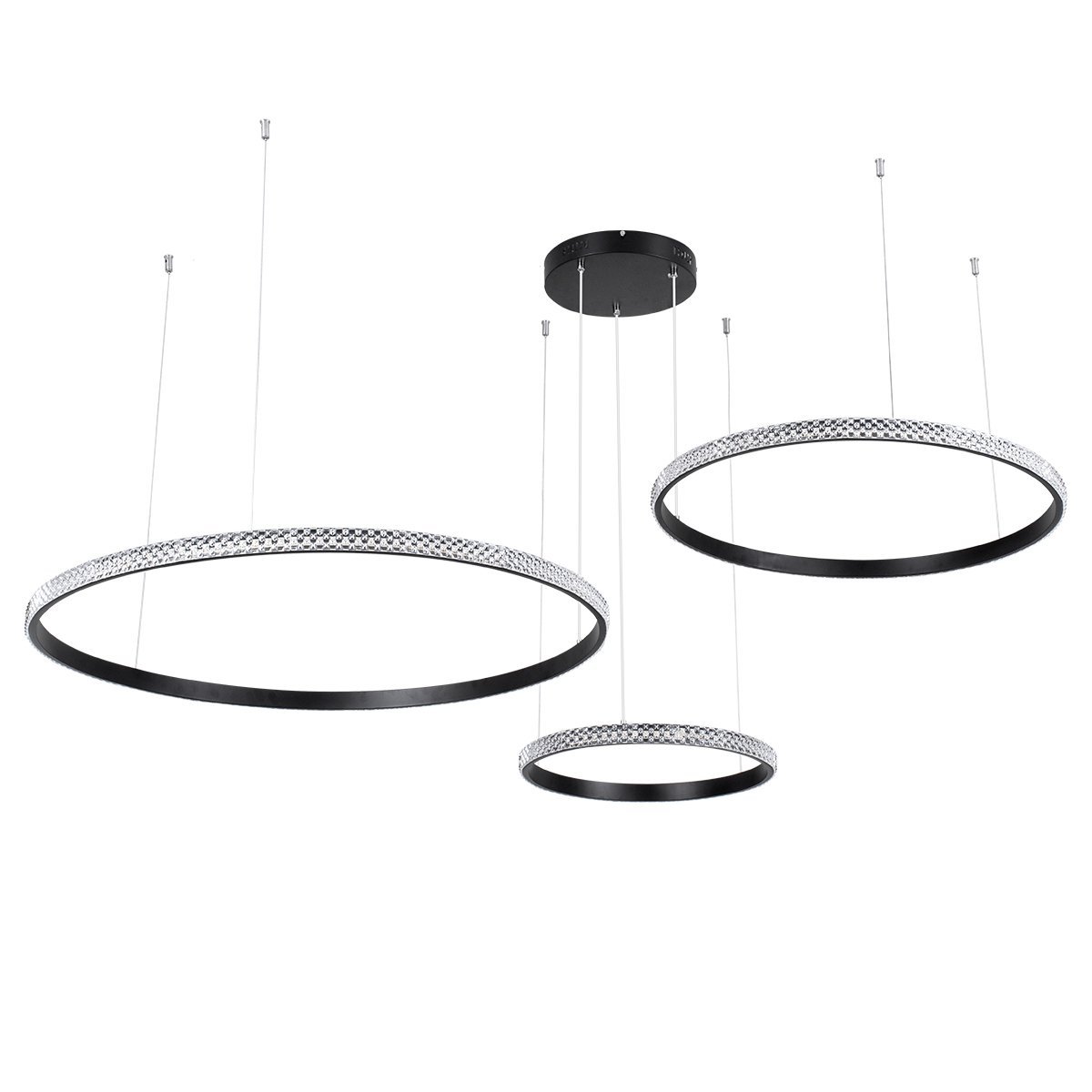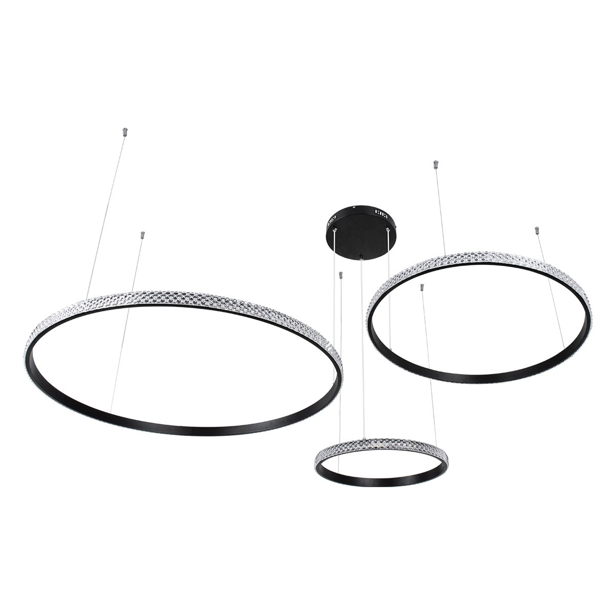 GLOBOSTAR® DIAMOND TRIO 61144 Μοντέρνο Κρεμαστό Φωτιστικό Οροφής LED 120W 14723lm 360° AC 220-240V IP20 Ρυθμιζόμενο Λευκό CCT με Χειριστήριο από 2700K έως 6000K Dimmable – Lumileds SMD Chip – Μαυρό Ματ – Μ150 x Π150 x Υ60cm – 3 Χρόνια Εγγύηση
