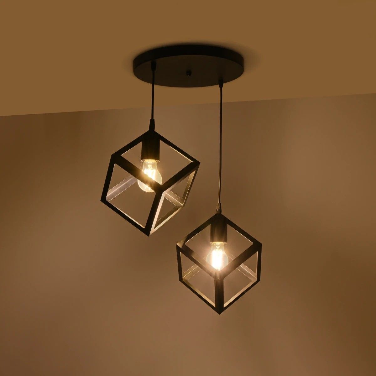 GLOBOSTAR® DISE 201-0050 Μοντέρνο Κρεμαστό Φωτιστικό Οροφής με Ντουί 2 x E27 AC 220-240V IP20 – Μαύρο – Μ50 x Π30 x Υ50cm