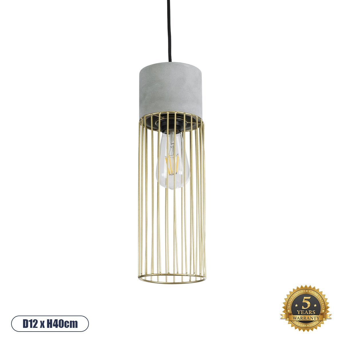 GLOBOSTAR® DURANT 01322 Μοντέρνο Κρεμαστό Φωτιστικό Οροφής με Ντουί 1 x E27 AC 220-240V IP20 – Γκρι & Χρυσό – Μ12 x Π12 x Υ40cm
