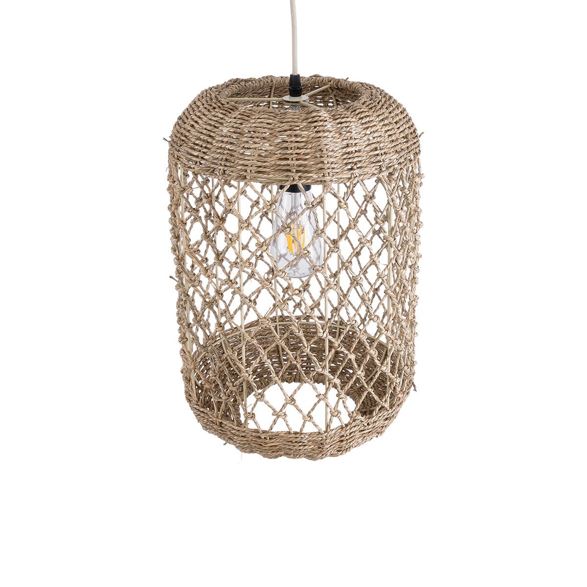 GLOBOSTAR® ECUADOR 02117 Boho Κρεμαστό Φωτιστικό Οροφής με Ντουί 1 x E27 AC 220-240V IP20 – Μπεζ – Μ28 x Π28 x Υ40cm