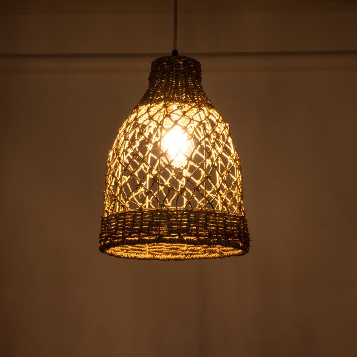 GLOBOSTAR® ECUADOR 02118 Boho Κρεμαστό Φωτιστικό Οροφής με Ντουί 1 x E27 AC 220-240V IP20 – Μπεζ – Μ25 x Π25 x Υ35cm