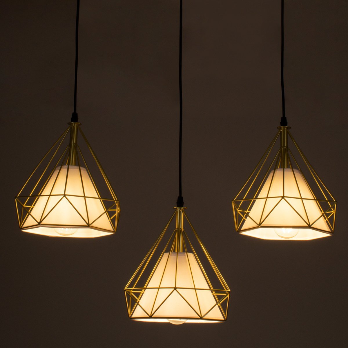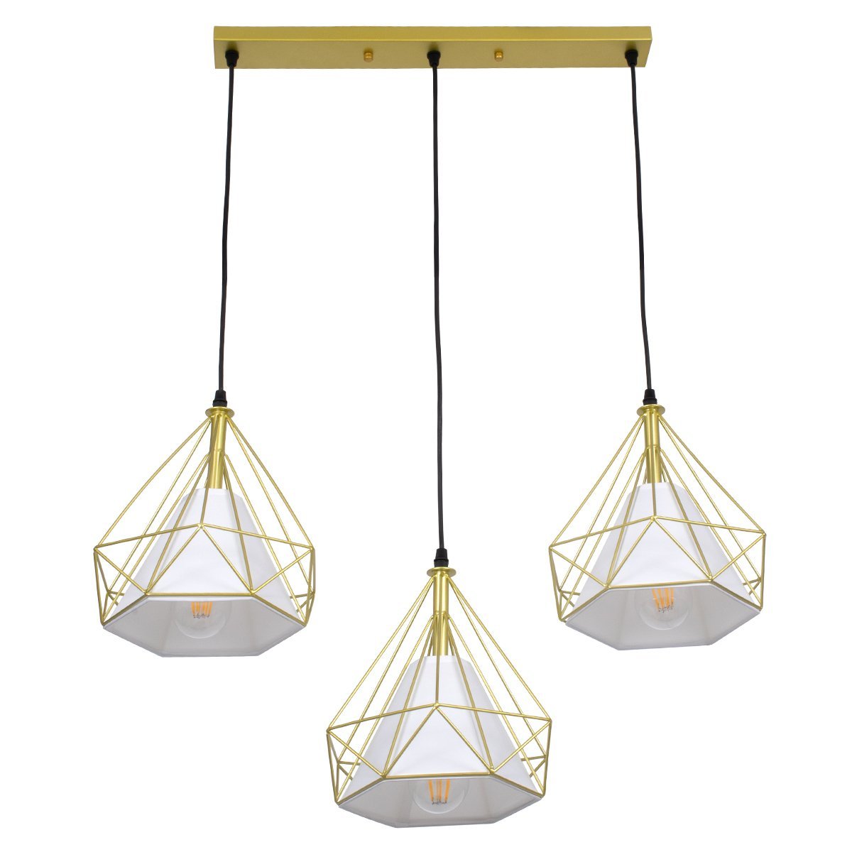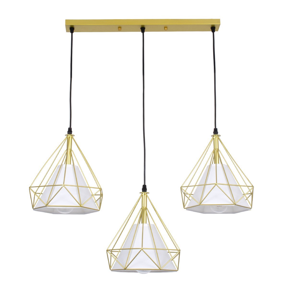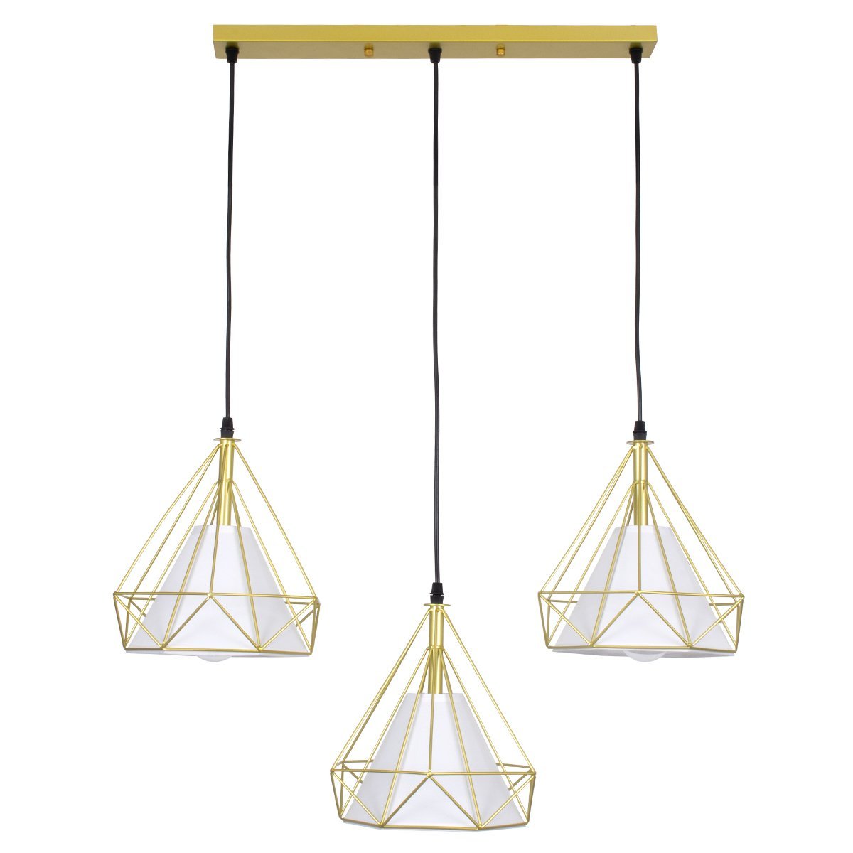 GLOBOSTAR® EIFFEL 61571 Vintage Κρεμαστό Φωτιστικό Οροφής με Ντουί 3 x E27 AC 220-240V IP20 – Χρυσό & Λευκό – Μ68 x Π25 x Υ130cm