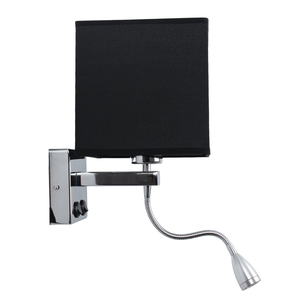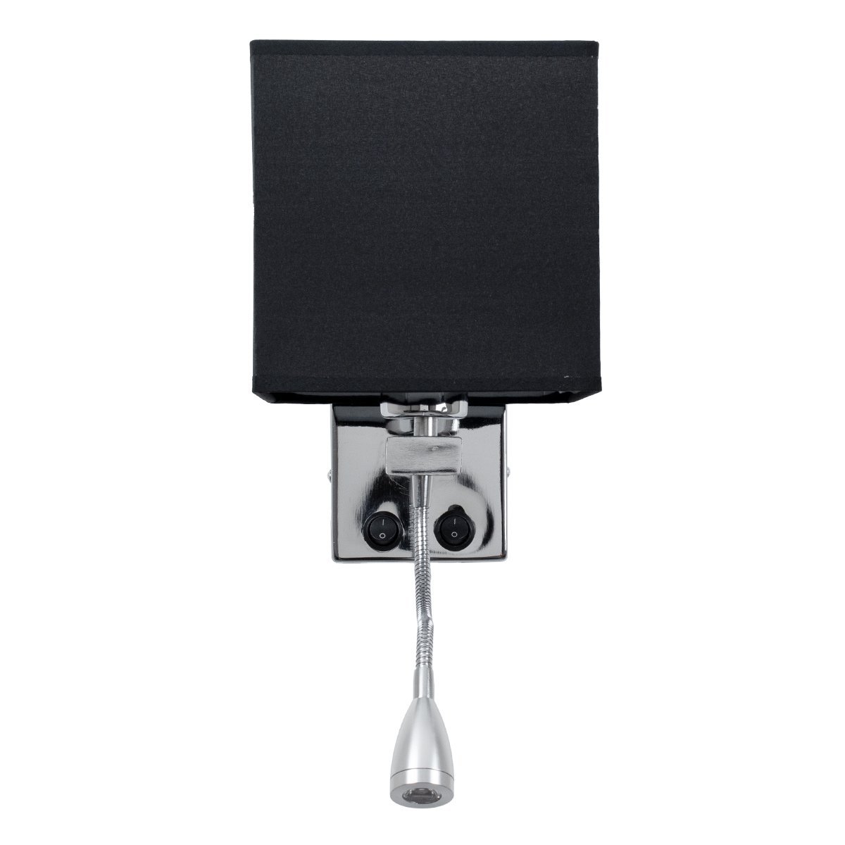 GLOBOSTAR® ELEGANT 01494 Μοντέρνο Φωτιστικό Τοίχου – Απλίκα Ξενοδοχείου Reading Light με Ντουί 1 x E27 LED 3W 360lm 36° AC 220-240V IP20 Θερμό Λευκό 2700K – Bridgelux COB Chip – Ασημί & Μαύρο – Μ17 x Π21 x Υ43cm – 2 Χρόνια Εγγύηση