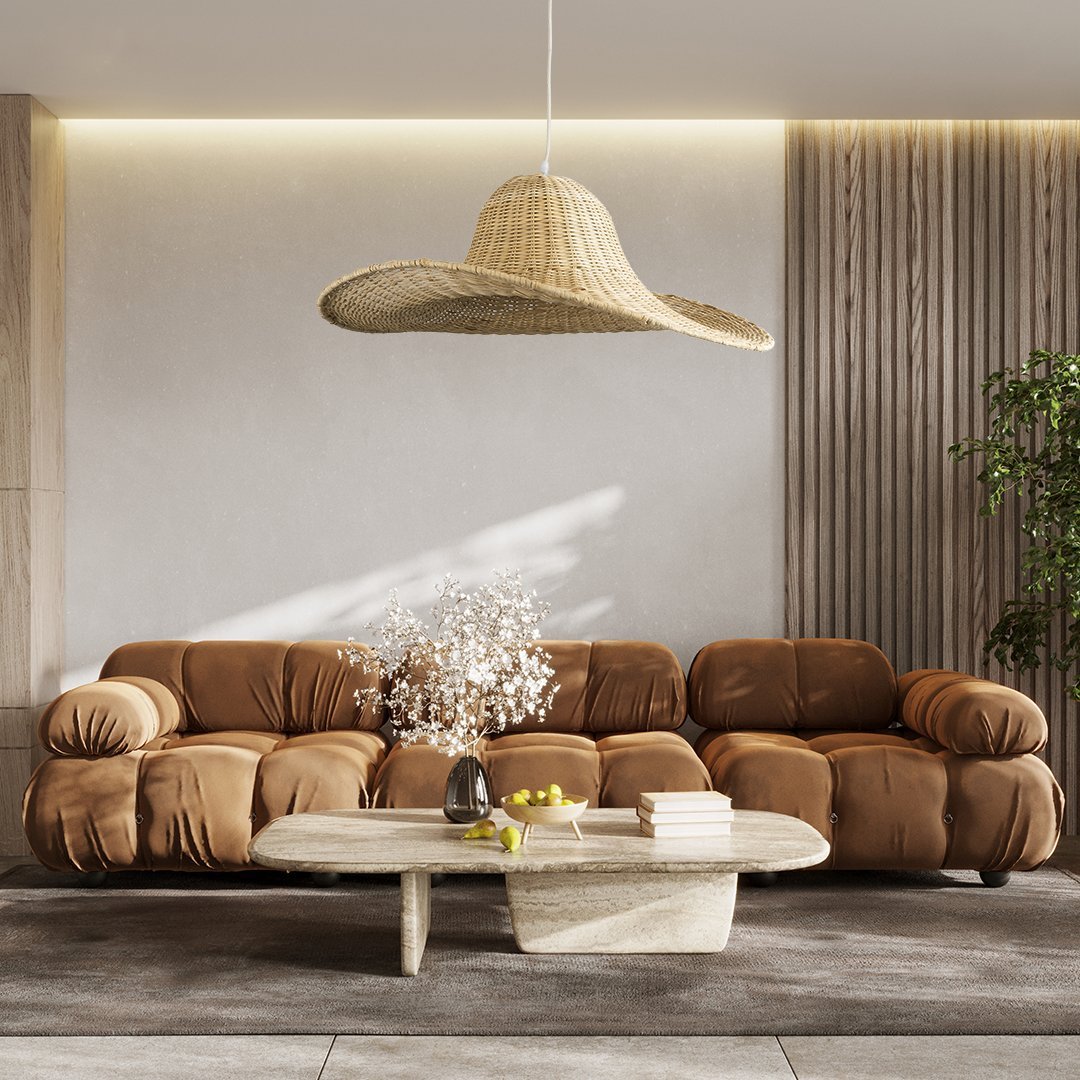 GLOBOSTAR® ESPARGOS 02214 Boho Κρεμαστό Φωτιστικό Οροφής με Ντουί 1 x E27 AC 220-240V IP20 – Μπεζ – Μ70 x Π70 x Υ35cm