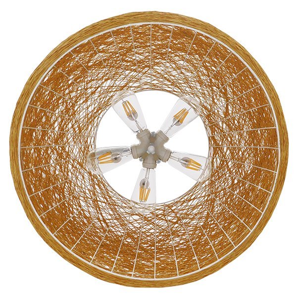 GloboStar® INCASS 01628 Vintage Κρεμαστό Φωτιστικό Οροφής Πολύφωτο Μπέζ Rattan Φ60 x Υ29cm