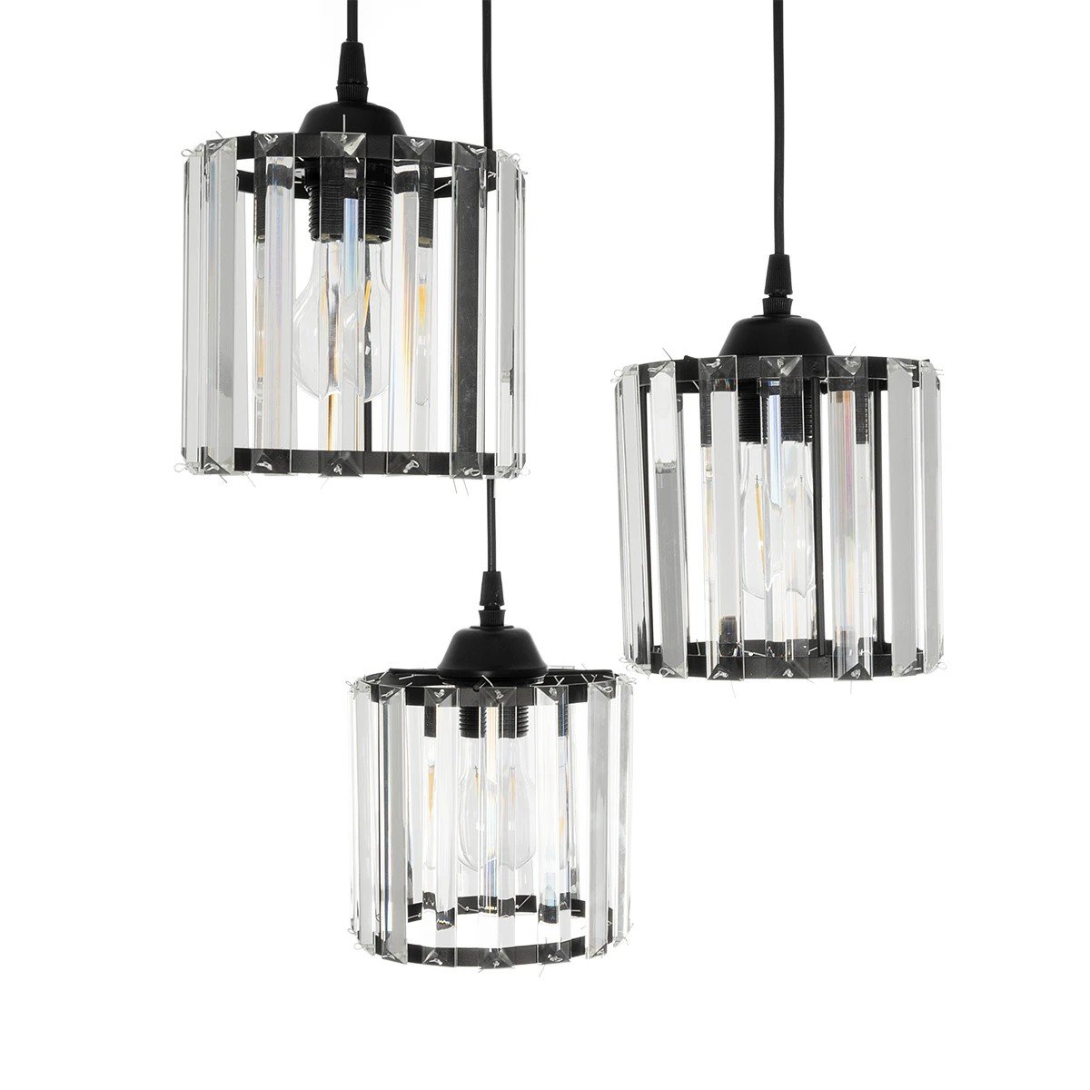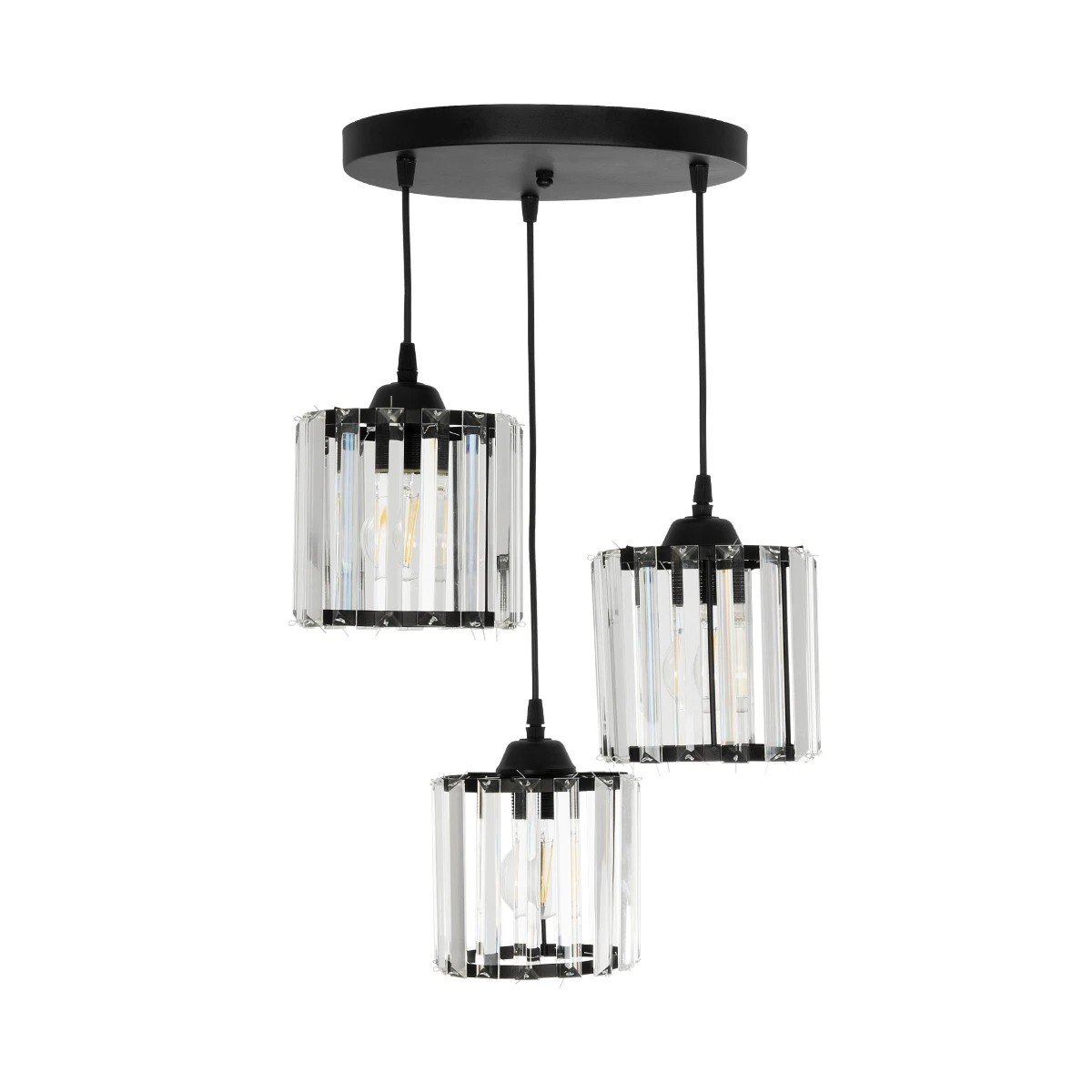 GLOBOSTAR® FLAREX 201-0084 Vintage Κρεμαστό Φωτιστικό Οροφής με Ντουί 3 x E27 AC 220-240V IP20 – Μαύρο & Διάφανο – Μ40 x Π40 x Υ50cm
