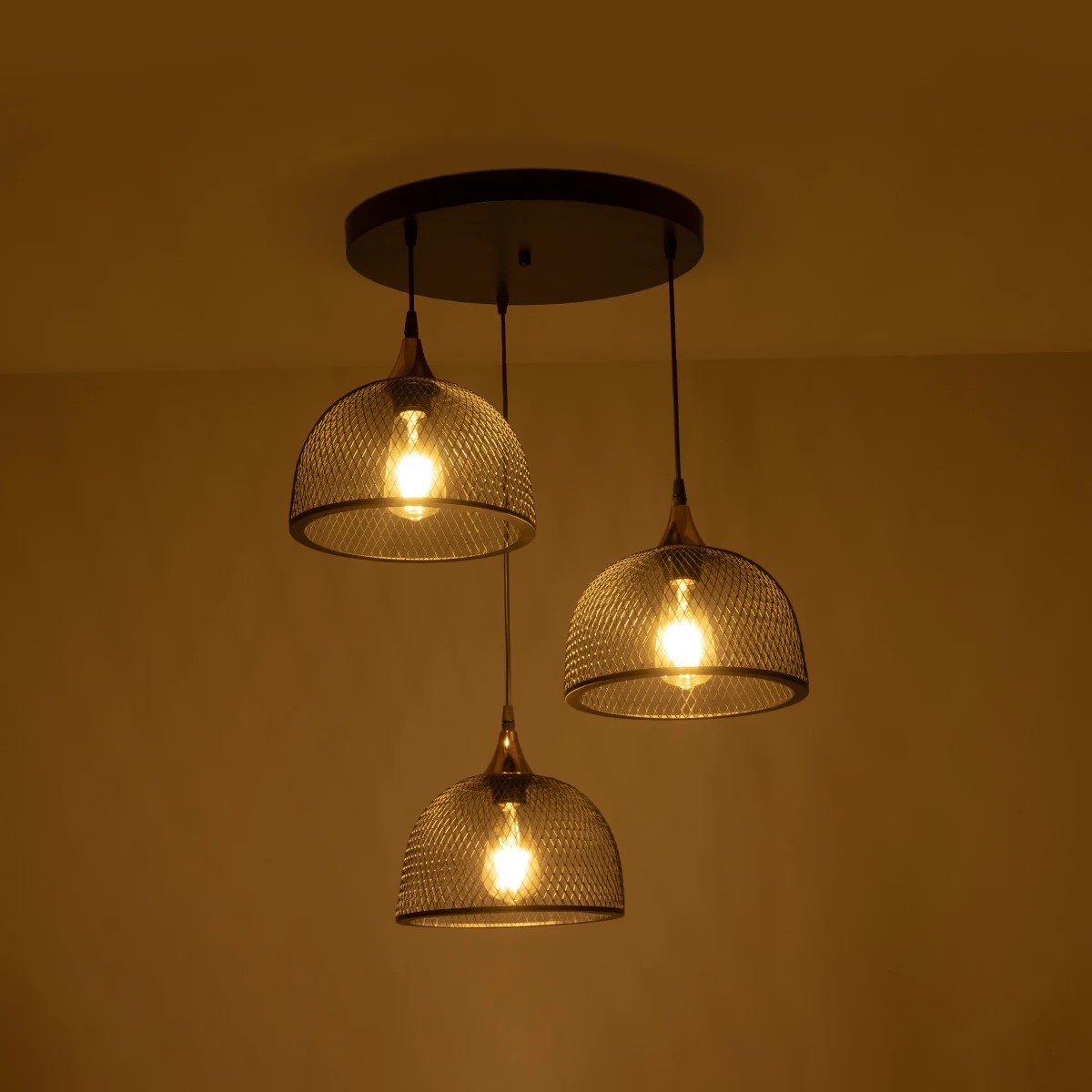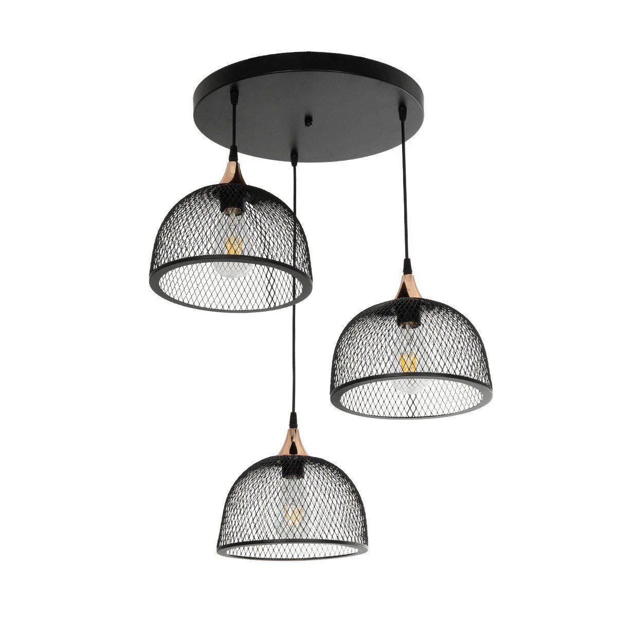 GLOBOSTAR® FLICKA 201-0113 Vintage Κρεμαστό Φωτιστικό Οροφής με Ντουί 3 x E27 AC 220-240V IP20 – Μαύρο & Χάλκινο – Μ55 x Π55 x Υ65cm