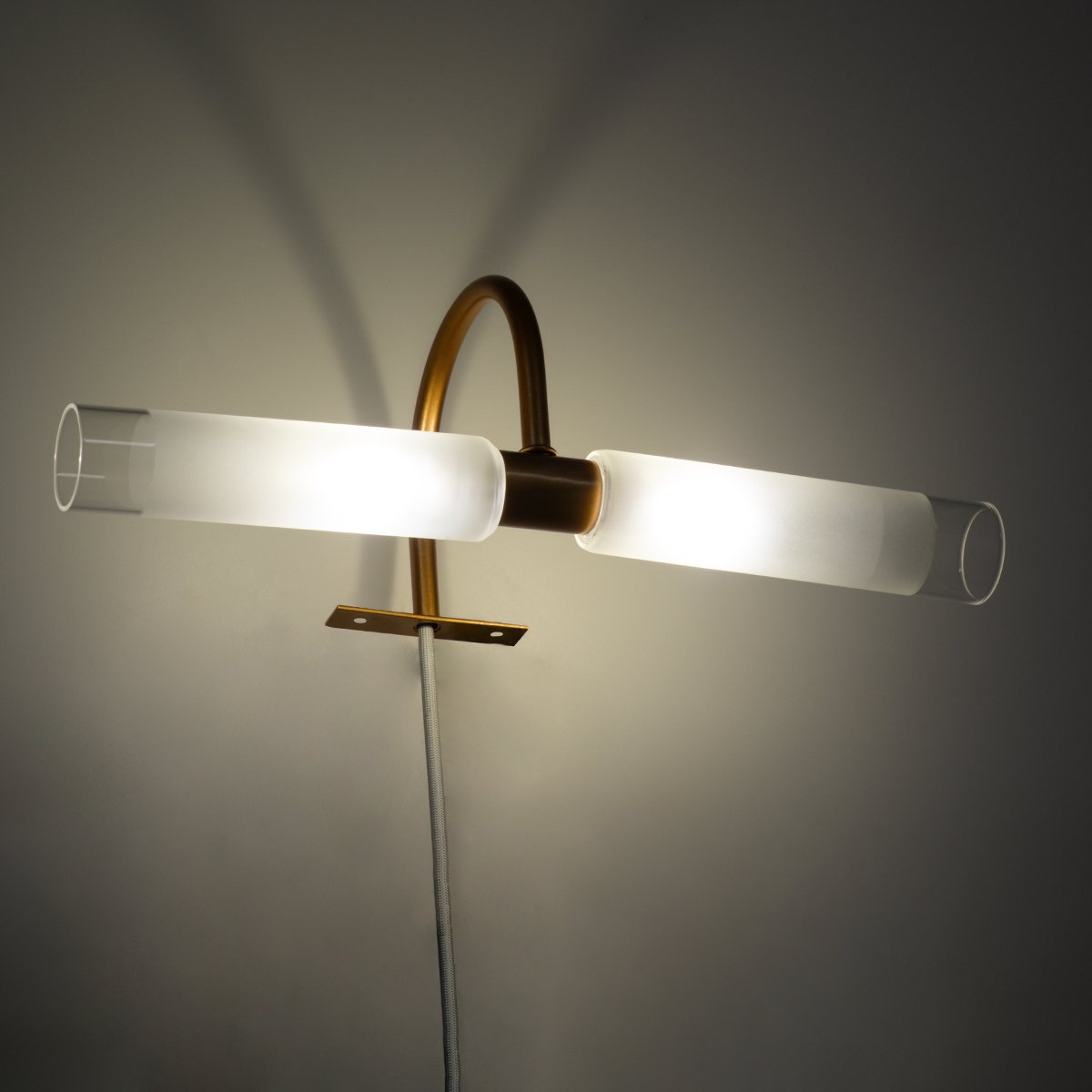 GLOBOSTAR® FLORA 60415 Μοντέρνο Φωτιστικό Τοίχου – Απλίκα Καθρέπτη Μπάνιου με Ντουί 2 x G9 AC 220-240V IP44 – Χάλκινο & Λευκό – Μ31 x Π13 x Υ12cm