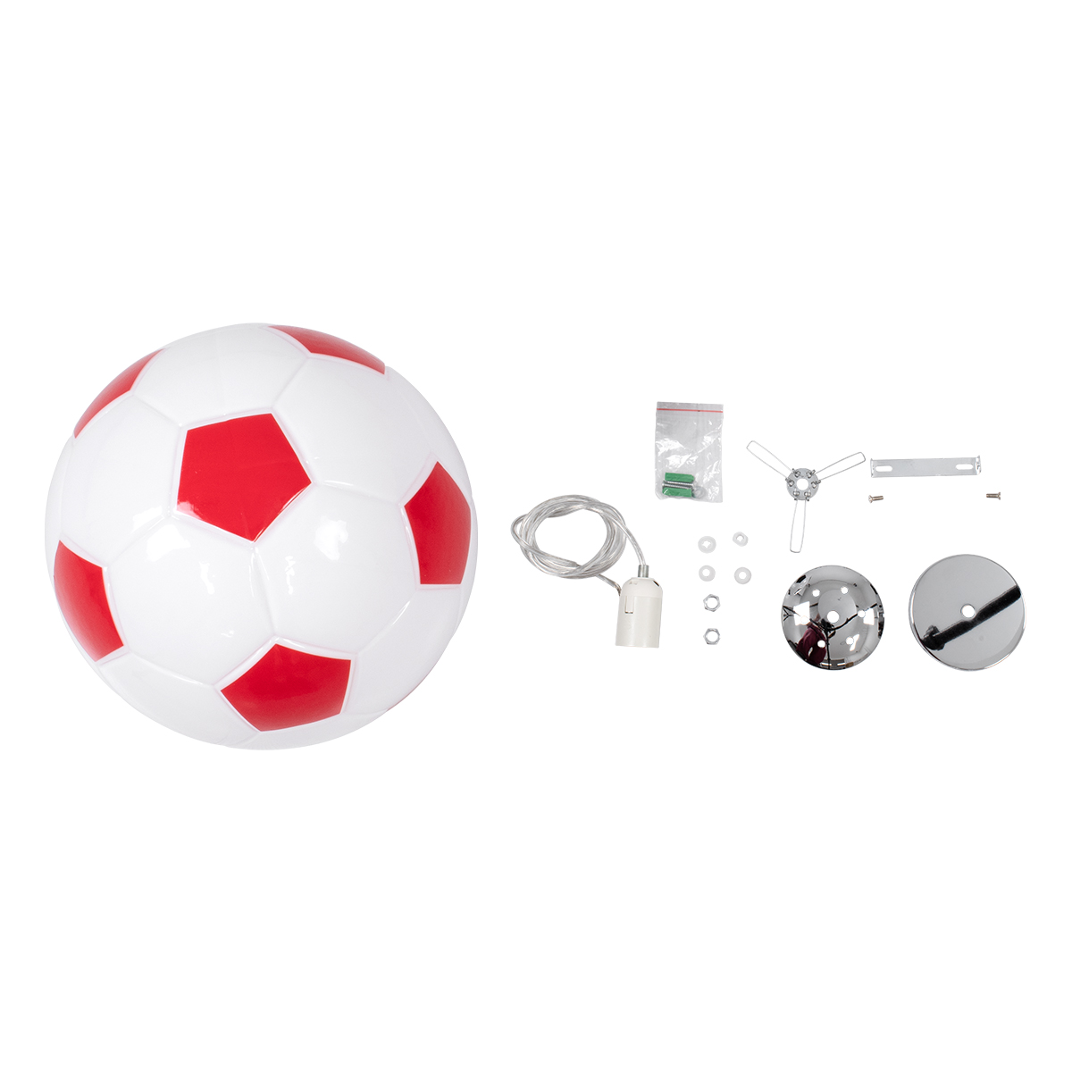 GLOBOSTAR® FOOTBALL 00646 Παιδικό Κρεμαστό Φωτιστικό Οροφής με Ντουί 1 x E27 AC 220-240V IP20 – Λευκό & Κόκκινο – Μ25 x Π25 x Υ25cm