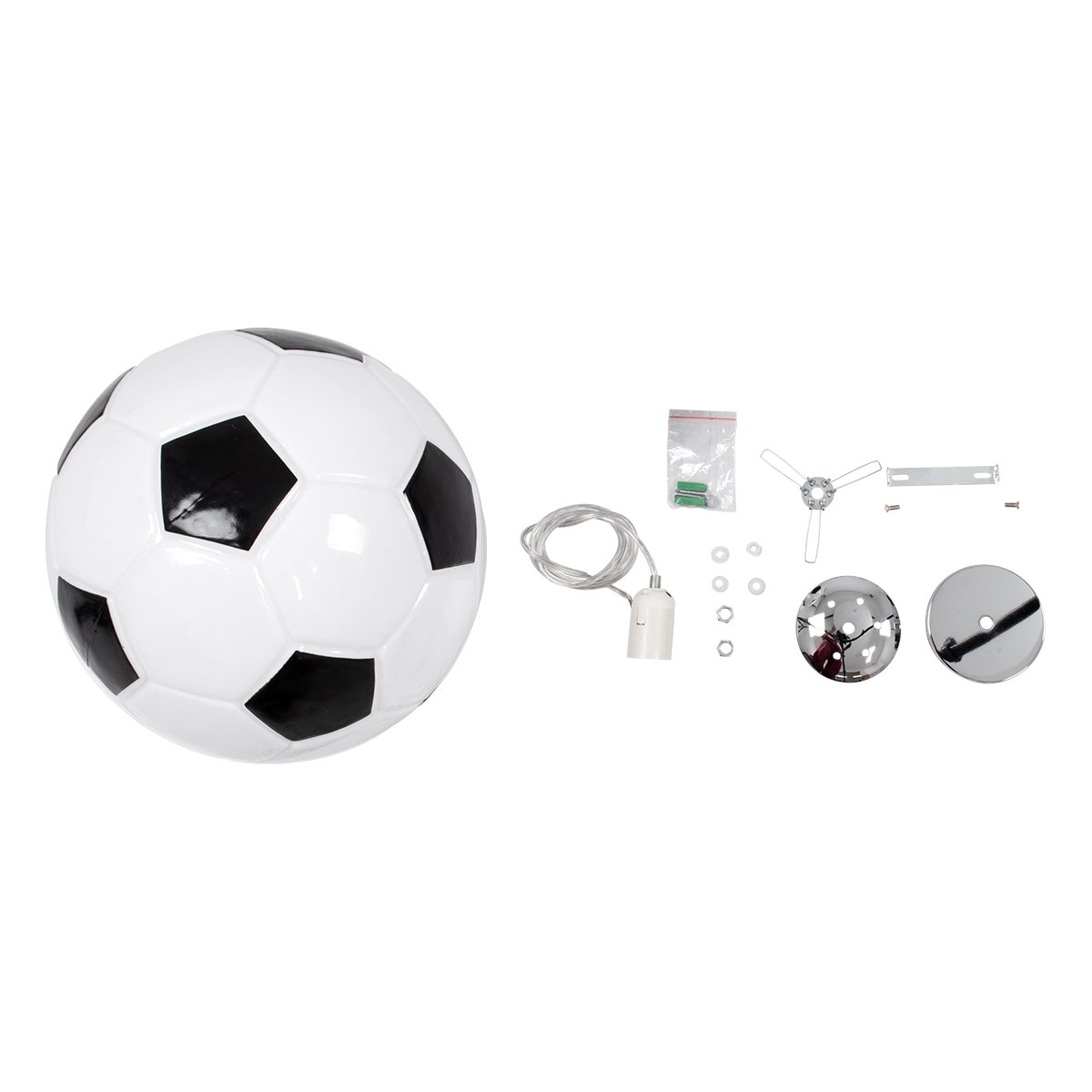 GLOBOSTAR® FOOTBALL 00647 Παιδικό Κρεμαστό Φωτιστικό Οροφής με Ντουί 1 x E27 AC 220-240V IP20 – Λευκό & Μαύρο – Μ25 x Π25 x Υ25cm
