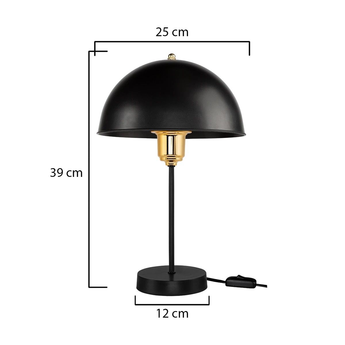 GLOBOSTAR® GAZETA 203-0298 Μοντέρνο Επιτραπέζιο Φωτιστικό Πορτατίφ με Ντουί 1 x E27 AC 220-240V IP20 – Μαύρο & Χρυσό – Μ25 x Π25 x Υ39cm