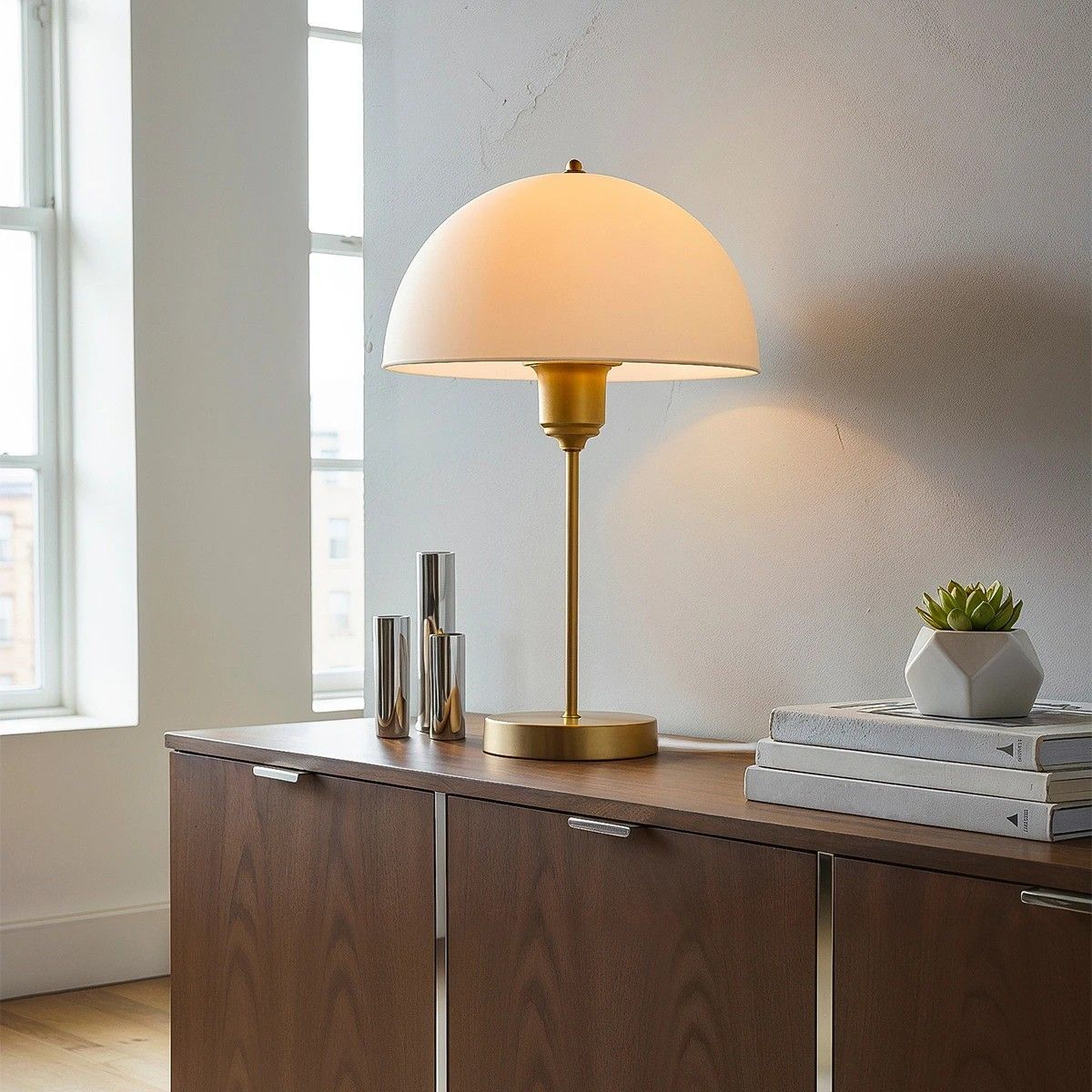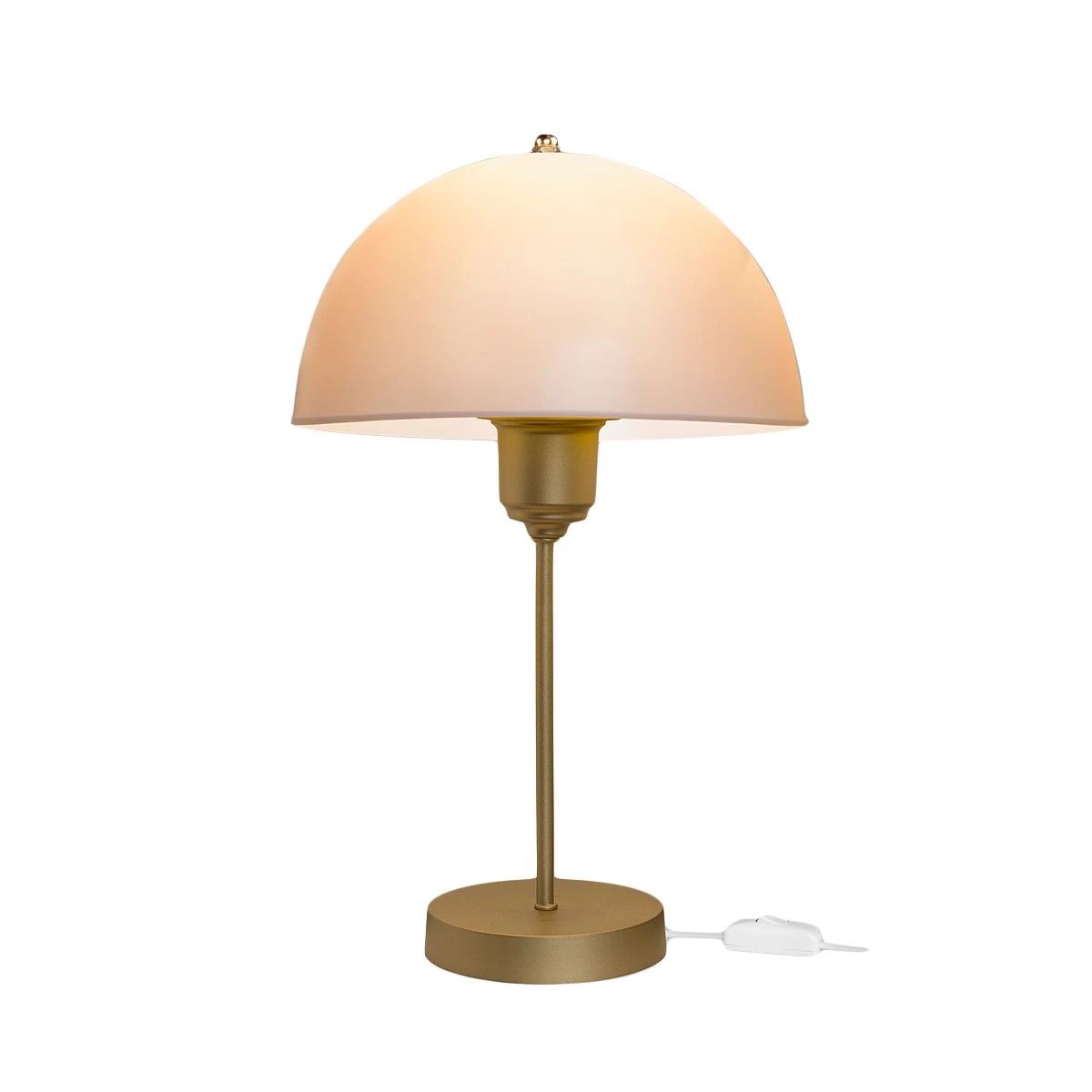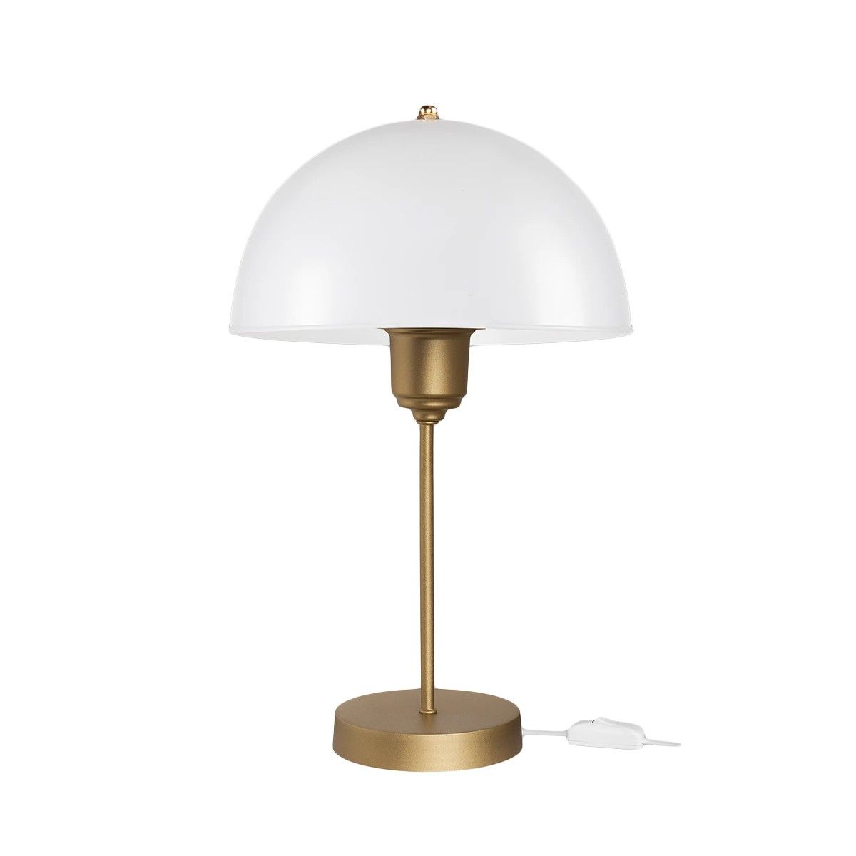 GLOBOSTAR® GAZETA 203-0304 Μοντέρνο Επιτραπέζιο Φωτιστικό Πορτατίφ με Ντουί 1 x E27 AC 220-240V IP20 – Λευκό Δίαφανο & Μπρονζέ – Μ25 x Π25 x Υ39cm