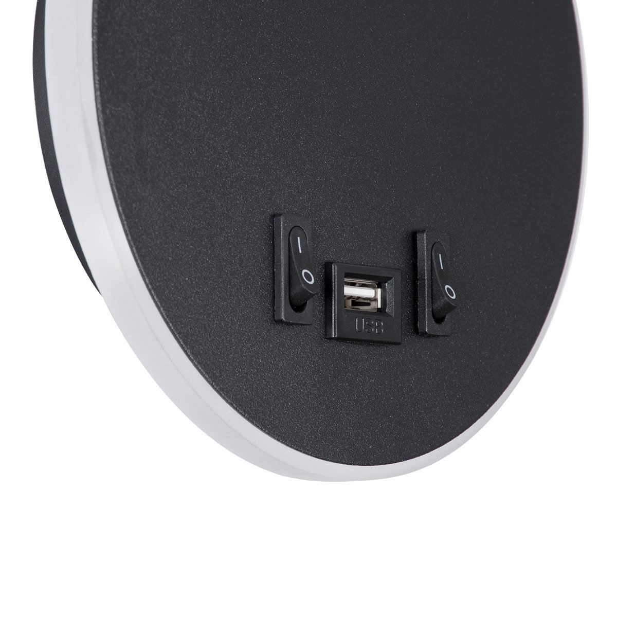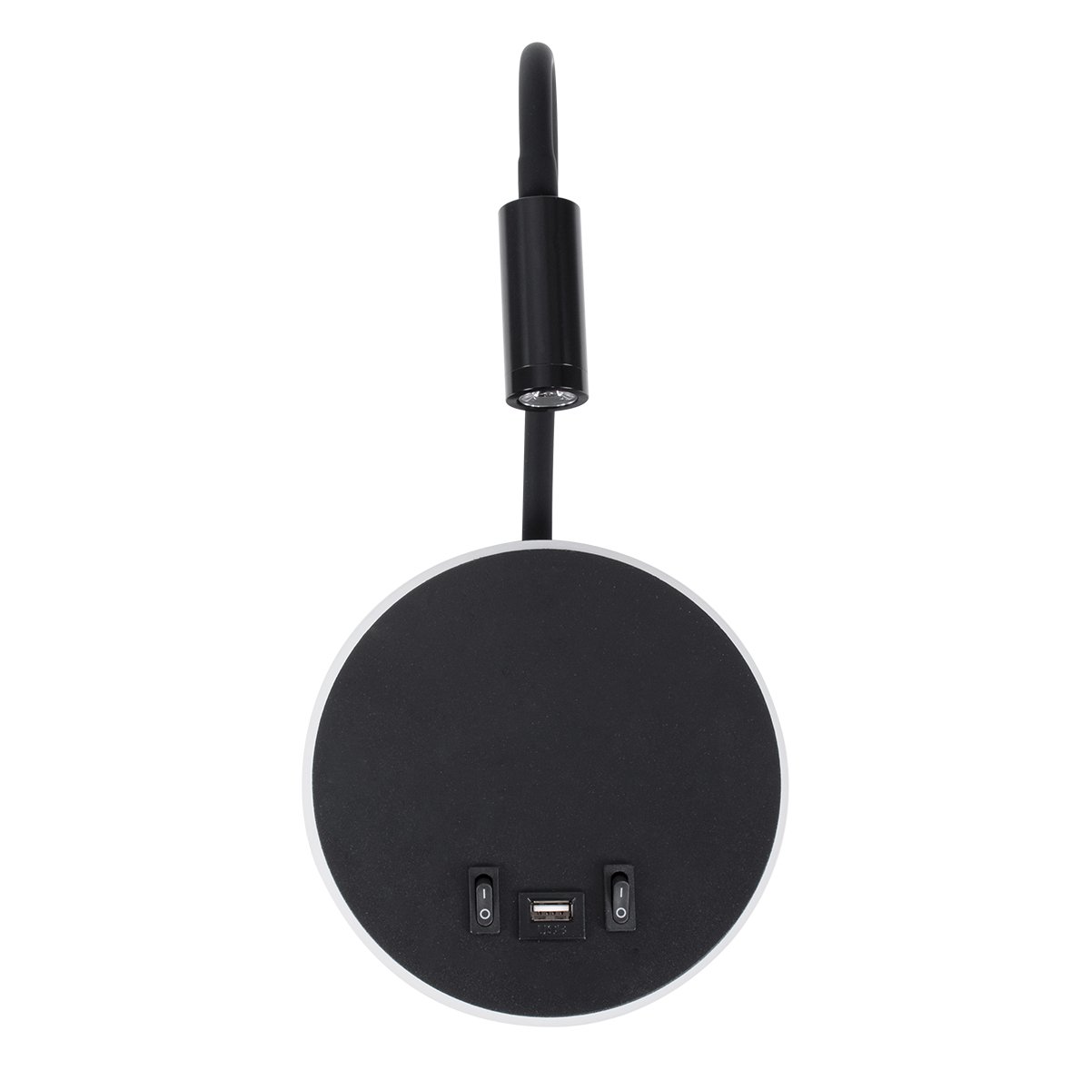 GLOBOSTAR® GOOSE 60883 Μοντέρνο Φωτιστικό Τοίχου – Απλίκα Ξενοδοχείου Reading Light με Φορτιστή USB 3A LED 6W 600lm 36° & 360° AC 220-240V IP20 Φυσικό Λευκό 4500K – CREE XPE & Lumileds SMD Chip & TÜV SÜD Driver – Μαύρο Ματ – Μ15.5 x Π15 x Υ30.5cm – 3 Χρόνια Εγγύηση